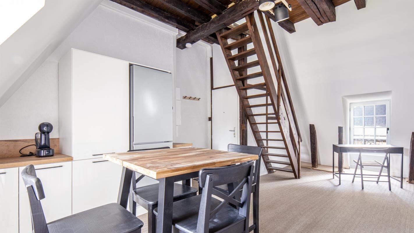 Le Mans Centre Au coeur du centre, aux pieds des commerces et des transports, au 3ème et dernier étage d'un immeuble de caractère à colombage, magnifique appartement meublé de type 2, entièrement rénové aux prestations soignées et à la décoration raffinée. Ce bien de charme vous offre une vaste réception avec cuisine équipée ouverte, salle d'eau avec Wc et chambre en mezzanine. Les provisions pour charges mensuelles comprennent : eau, charges locatives et ordures ménagères Les informations sur les risques auxquels ce bien est exposé sont disponibles sur le site Géorisques : georisques. Gouv. Fr