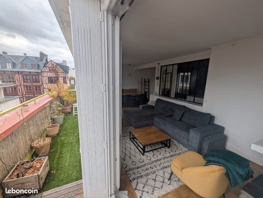 Magnifique appartement F3 meublé et rénové se situant au dernier étage (4eme) sans ascenseur, dans l'hypercentre ville de Rouen. Terasse vue cathédrale. Cuisine ouverte sur salle à manger salon. Une grande chambre + dressing coté cour (au calme ) et une chambre d'amis coté terrasse. Mensualité : 1100e Cc