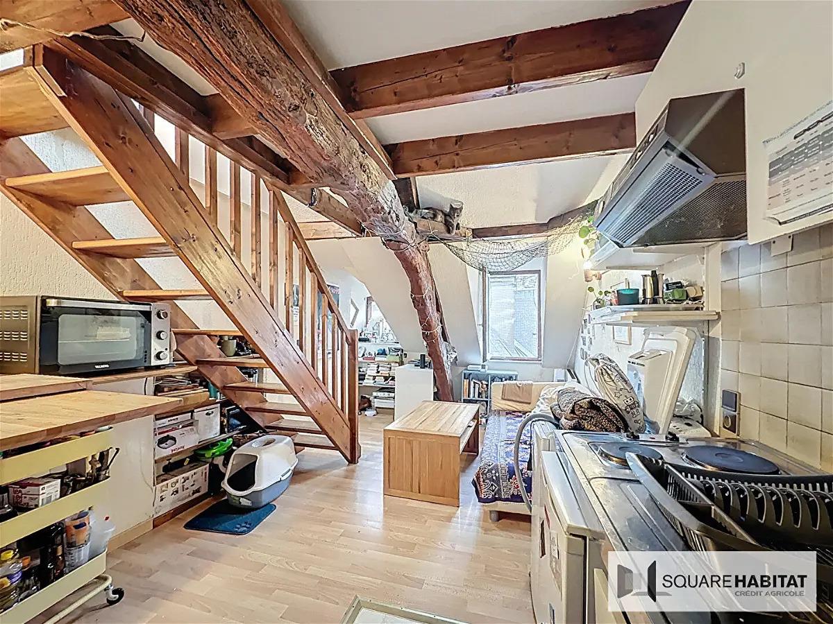 Rennes - Hyper Centre - Exclusivite : Emplacement idéal, rue de Toulouse, en plein coeur de la vie Rennaise, avec le charme de l'ancien, ce studio en duplex de 28.52m² au sol et 22.40m² carrez qui vous offre une pièce de vie avec kitchenette, une salle de ba...