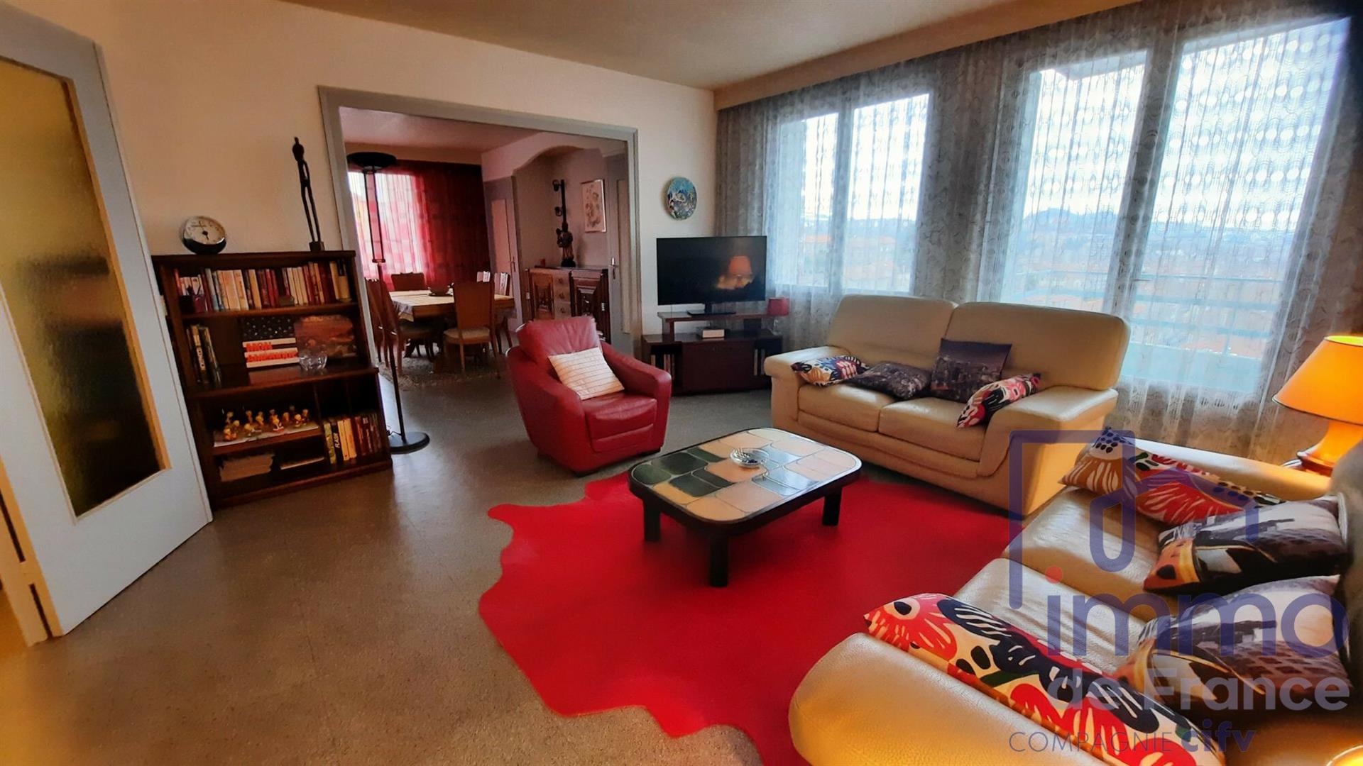 Votre agence Immo De France Forez Velay vous accueille téléphoniquement du lundi au samedi de 8h à 19h sans interruption. Contactez Emilio. Vend Saint-Etienne secteur Fauriel T3/4 de 84 m² au 7ème et dernier étage d'une copropriété de bon standing avec ascenseur, offrant vaste hall avec penderie, beau salon/séjour plancher de 36 m² et cuisine indépendante ouverts sur balcon/terrasse, Chambre de 15 m² (possibilité 2), wc, salle de bains carrelés, profitez d'une vue panoramique sans vis à vis, cave, travaux d'amélioration thermique copropriété prévus, prévoir rafraîchissement intérieur, proximité commodités, marché Fauriel, commerces du Rond Point, transports en commun, axes routiers, à voir Honoraires à la charge du vendeur. Dans une copropriété de 32 lots. Quote-Part moyenne du budget prévisionnel 2 388 €/an. Aucune procédure n'est en cours. Classe énergie G, Classe climat G Logement à consommation énergétique excessive. Montant estimé des dépenses annuelles d'énergie pour un usage standard : entre 4176.00 € et 5651.00 € sur les années 2021, 2022 et 2023 (abonnements compris). Les informations sur les risques auxquels ce bien est exposé sont disponibles sur le site Géorisques : .