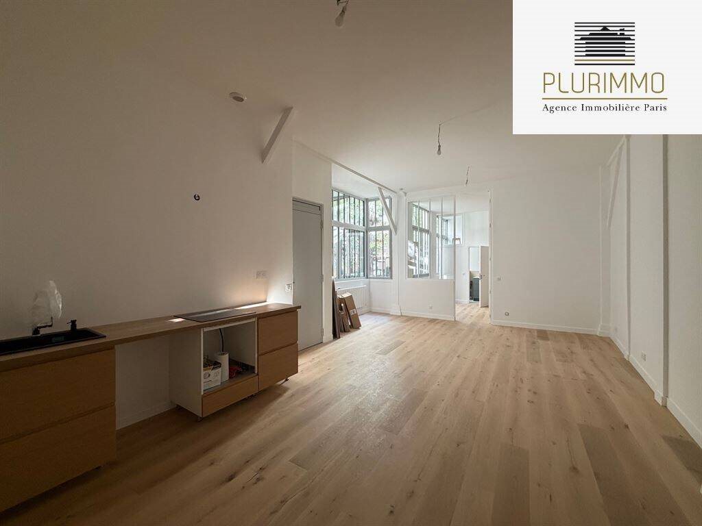 Paris 14ème - Alésia. Dans un petite copropriété d'ateliers, appartement de 62.5m2 loi Carrez avec 3.60m de hauteur sou plafond. Il se compose d'un séjour avec cuisine ouverte, une chambre avec rangements, une salle de bains avec wc, une salle de douche avec w...