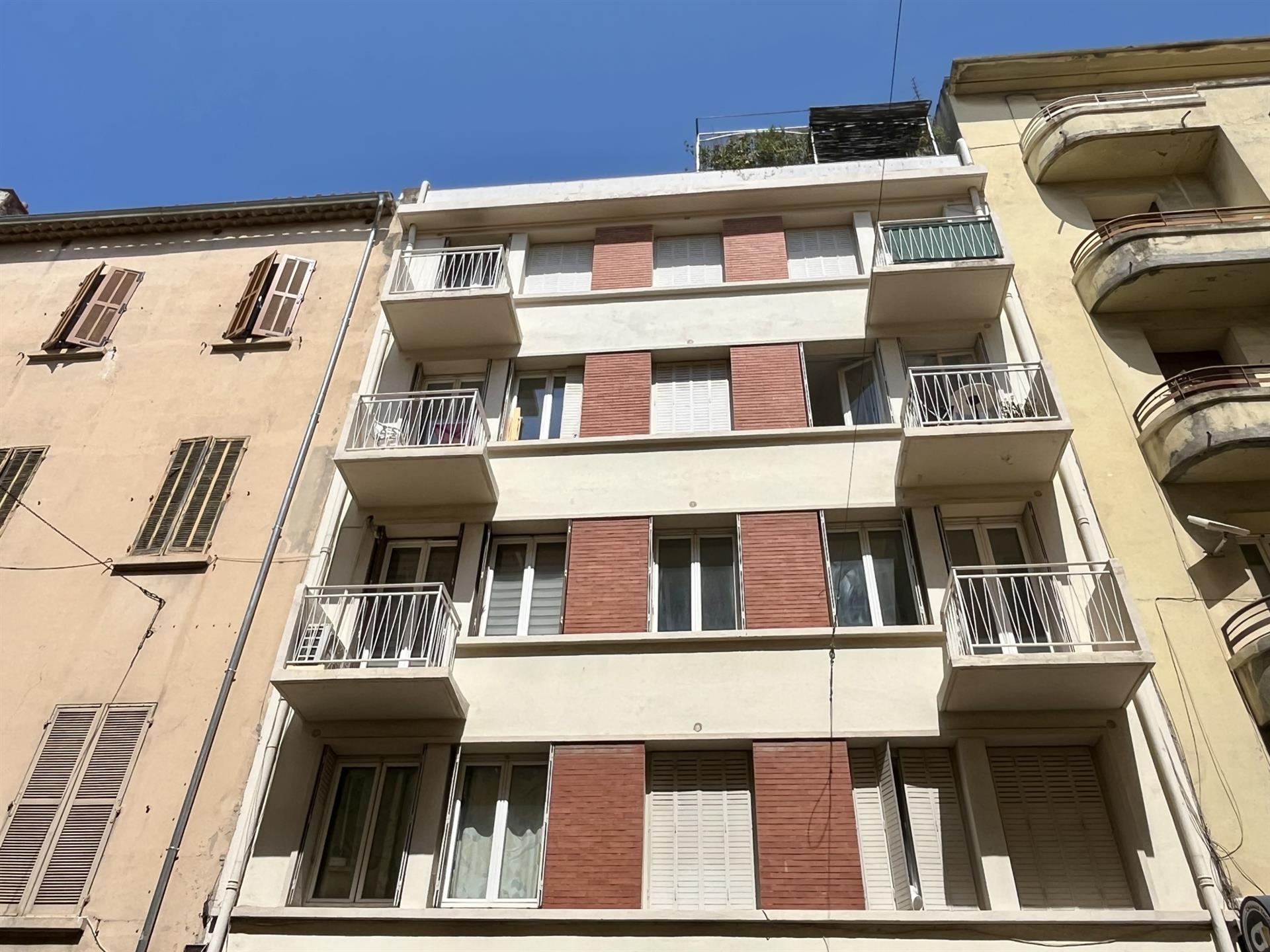 Toulon Centre Ville - Situé dans un petit immeuble des années 50 en bon état, proche des commodités, du Port et du jardin Alexandre 1er, appartement T2 d'une superficie de 25 m2. Il se compose d'un séjour avec cuisine américaine, salle d'eau avec Wc et coin nuit faisant office de chambre avec dressing. Le bien bénéficie d'une cave privative en sous-sol et la copropriété dispose d'un local vélo au rez-de-chaussée. Vendu meublé, précédemment loué 550 Eur par mois.