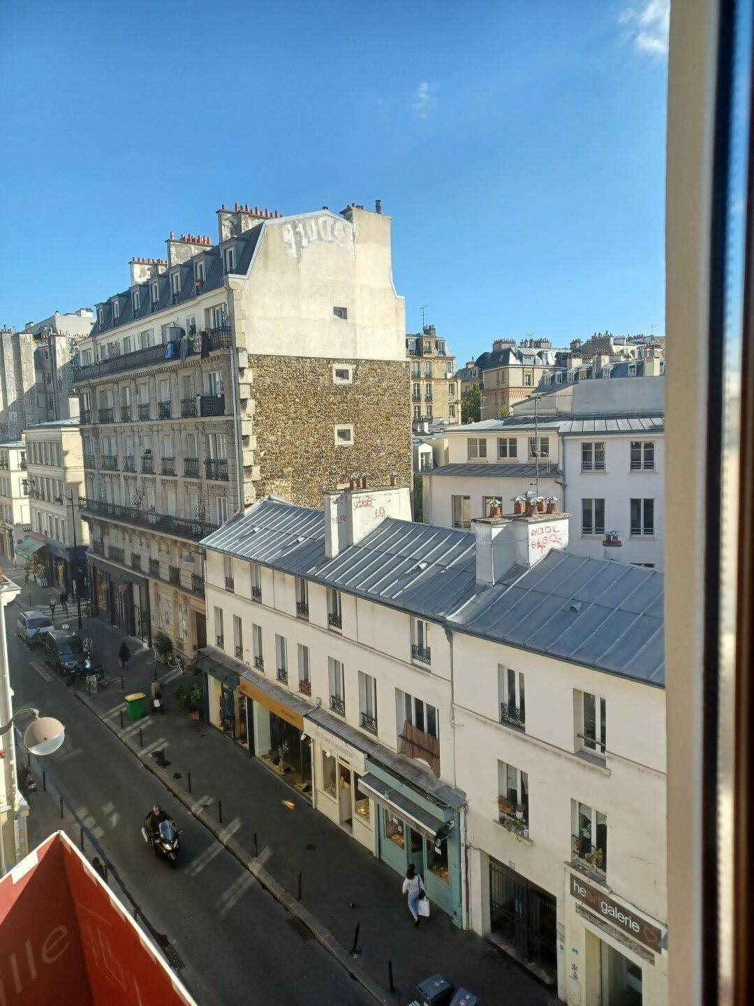 Emplacement 1er au sein du 11ème arrdt, rue des Taillandiers, au 4ème étage sans ascenseur, vue dégagée sur les toits de Paris, sans vis-à-vis, lumineux appartement composé d'un grand living dont cuisine ouverte aménagée avec pas moins de 6 fenêtres, chambre et grande salle salle d'eau. Le plan du logement peut-être revu facilement afin d'ajouter une chambre supplémentaire ou un bureau. Différents point d'eau (arrivée/évacuation) permetten également de moduler aisément le plan existant. Nous proposons également un emplacement de parking à deux pas du logement.