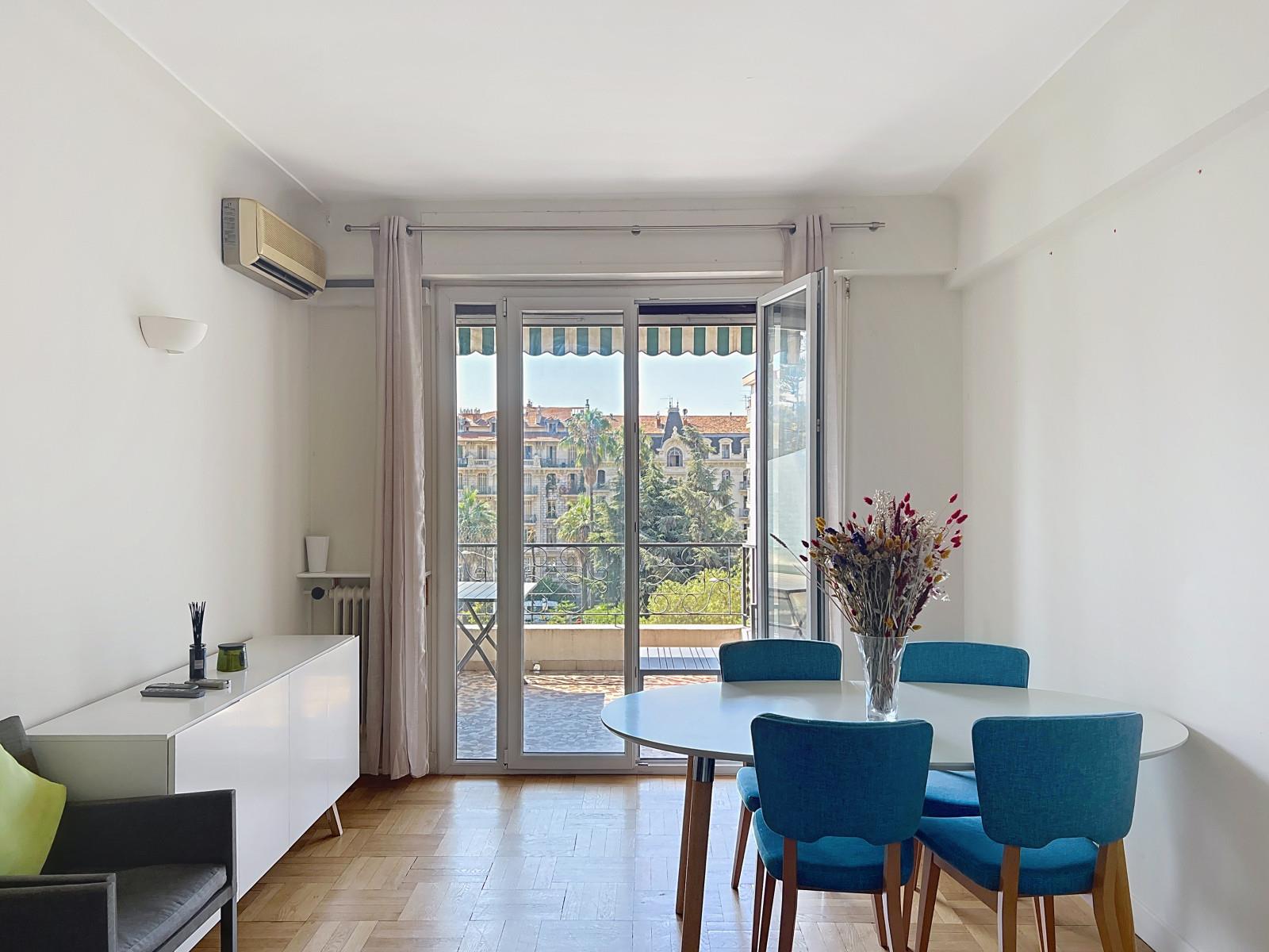 Nice Cimiez. Situé dans une belle résidence du bas de Cimiez, construite en 1960 et entourée de jardins parfaitement entretenus, ce superbe 3 pièces meublé offre un cadre de vie élégant, lumineux et fonctionnel. Entièrement climatisé et en excellent état, il se compose d'une entrée desservant un vaste séjour exposé plein Sud, baigné de lumière naturelle et prolongé par une agréable terrasse ensoleillée. Le parquet, les finitions soignées et la luminosité renforcent le confort et le charme de cette pièce de vie. La cuisine indépendante, entièrement équipée, ainsi que les deux chambres avec placards intégrés, s'ouvrent sur une seconde terrasse au Nord, idéale pour profiter de la fraîcheur en été. L'espace nuit est complété par une salle de douche moderne entièrement rénovée et des Wc indépendants également rénovés. La résidence offre un environnement calme, verdoyant et sécurisé. Un garage fermé, en rez-de-chaussée, vient compléter ce bien. Loyer Charges Comprises : 1 700 € Dépôt de garantie : 3 110 € Honoraires d'agence : 845,65 €