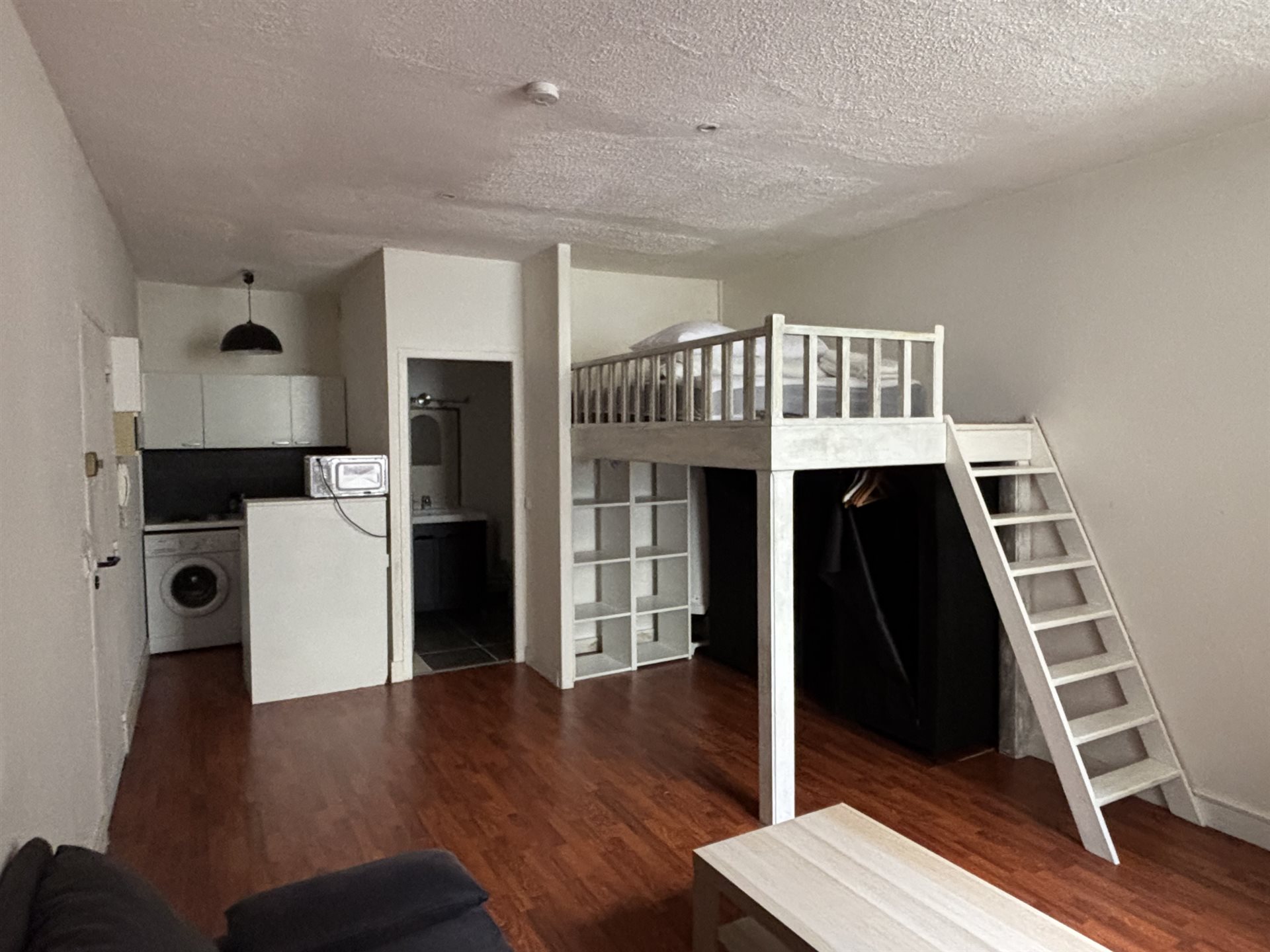 Bordeaux - Quartier Les Chartrons. En plein centre-ville de Bordeaux, dans le quartier des Chartrons, Bel appartement de 28.30 m2 situé au 2ème étage dans une copropriété très bien tenue. Cet appartement se compose d'un grand séjour avec un coin kitchenette en retrait, d'une grande salle de bains avec baignoire et wc. Actuellement un lit mezzanine offre la possibilité d'un couchage en hauteur. L'appartement donne sur une grande cour intérieure, au calme. Le tram B se trouve face à l'immeuble (arrêt Cours du Médoc). Situé au pied du Tram, face aux Quais des Chartrons avec ses nombreux commerces et restaurants. Les plus : Aucun travaux à prévoir dans l'appartement Immeuble très bien tenu L'immeuble bénéficie d'un local poubelle Possibilité de garer son vélo dans le garage de l'immeuble : une tolérance est accepté Appartement et quartier très recherché, idéal pour un investissement locatif