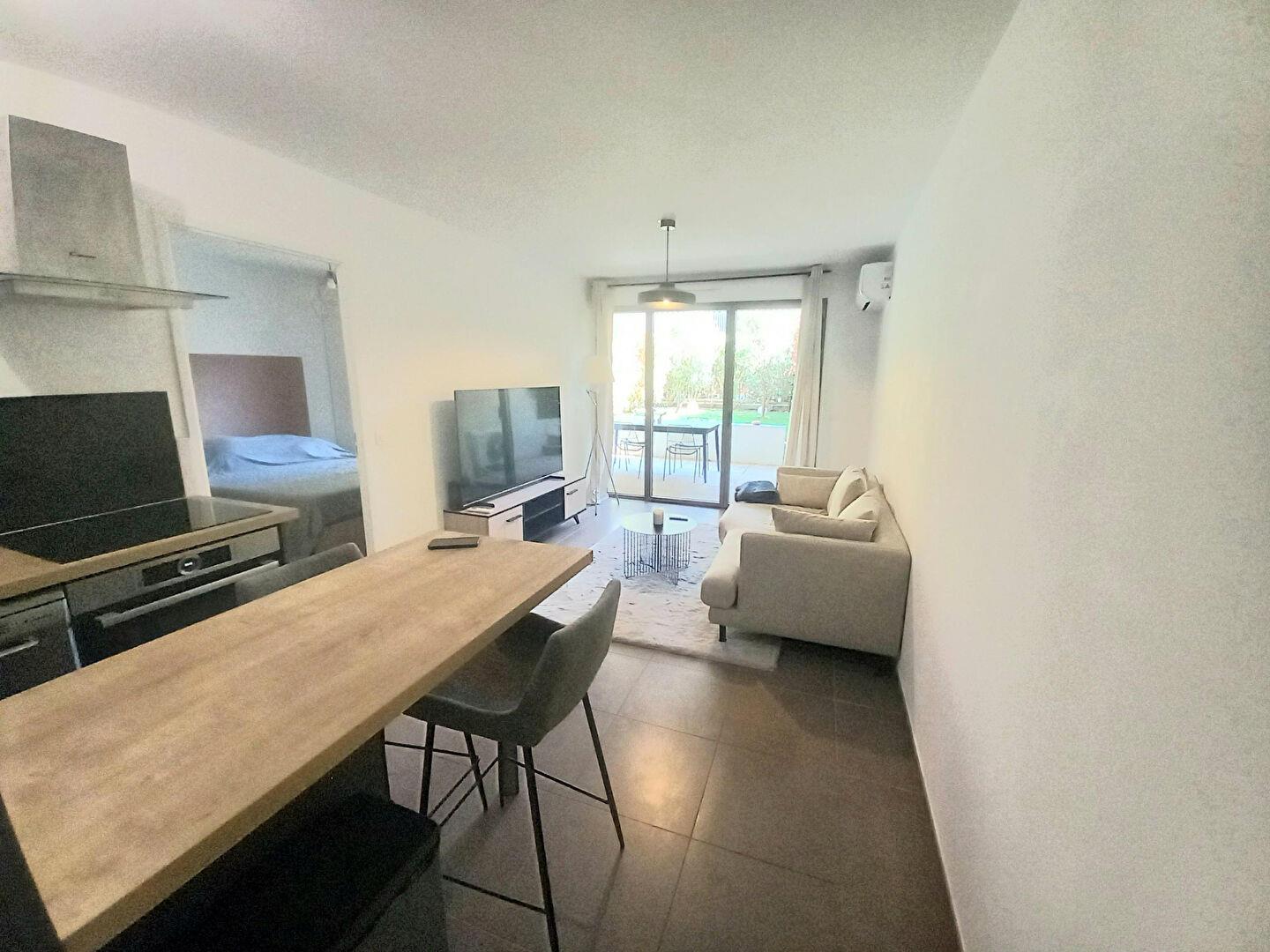 Aix La Duranne, au sein d'une résidence calme et sécurisée, bel appartement T2 meublé comprenant un séjour ouvert sur une cuisine aménagée et équipée, une chambre avec dressing, une salle d'eau avec Wc, une terrasse ainsi qu'un jardinet. Ce logement dispose de la climatisation réversible Un garage fermé en sous-sol complète ce bien. Disponible le 31/10Appartement soumis à la garantie des loyers impayés, il sera demandé d'être en Cdi et de percevoir 3X le montant du loyer Loyer €890/mois charges comprises dont charges récupérables: €90/mois (Provisionnelles mensuelles avec régularisation annuelle) | Honoraires charge locataire: €476.84 Ttc dont honoraires d'état des lieux: €110.04 Ttc | Dépôt de garantie: €1 600 | 13100 AIx en Provence | Surface habitable: 36.68m²Nos honoraires