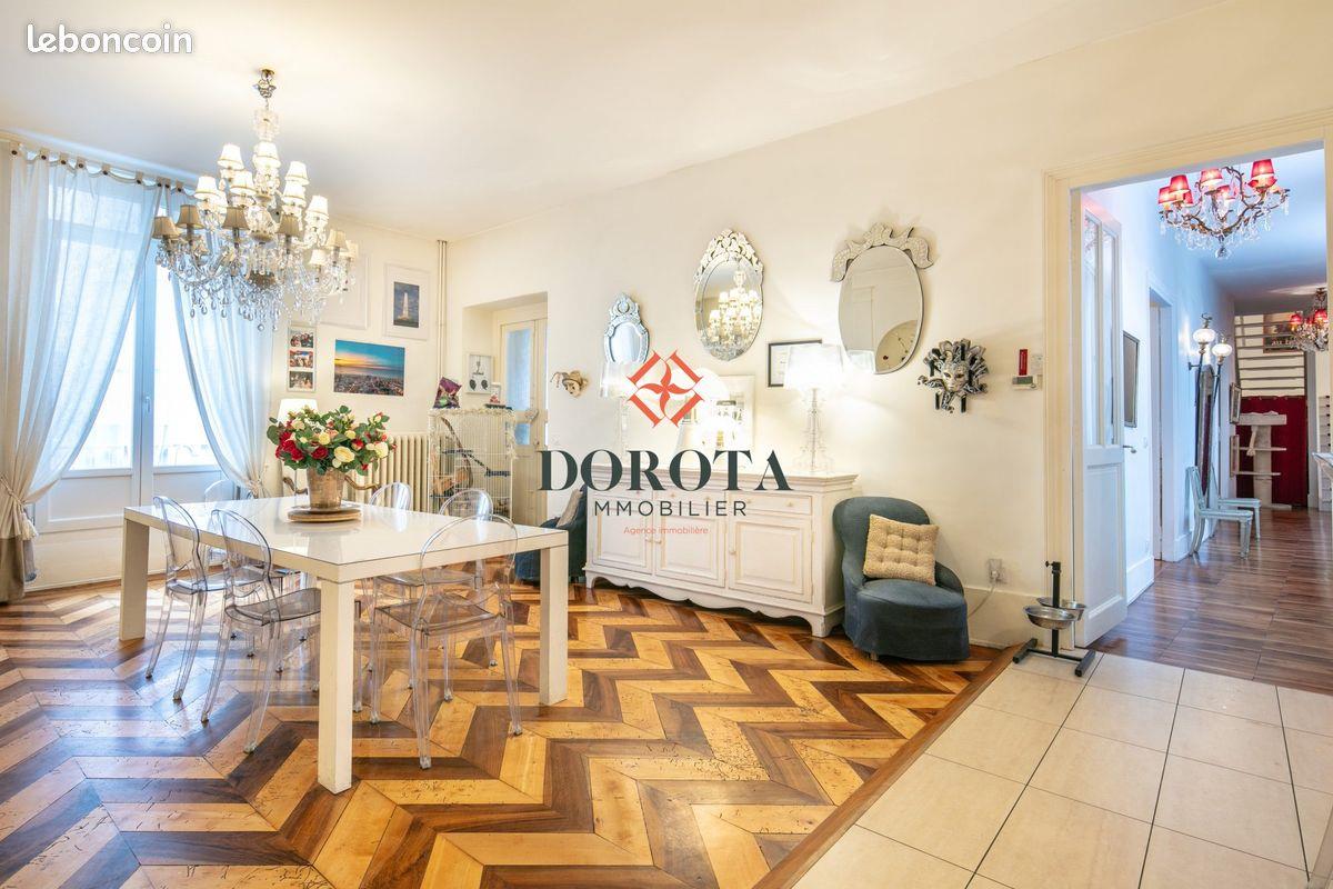 Dans un hotel particulier, somptueux duplex de 6 pièces offrant une opportunité rare, avec de hauts plafonds et des volumes majestueux répartis sur 286m² (260m² loi Carrez).Situé au 2e et dernier étage d un élégant immeuble du début du XXe siècle, ce bien bénéficie d une situation privilégiée en plein centre-ville, au pied du tramway et à proximité de toutes commodités.La petite copropriété sécurisée de haut standing, comptant très peu de lots, garantit un calme absolu et un privilège inégalé.Cet appartement jouit d une exposition sud qui baigne les pièces de lumière naturelle, offrant ainsi un cadre de vie exceptionnel.L intérieur se compose d un grand salon, d une cuisine aménagée et entièrement équipée avec son espace salle à manger, de cinq chambres spacieuses, dont deux avec leurs salles d eau privatives, d une salle de bains et d un espace buanderie.Pour toute information supplémentaire ou pour organiser une visite, l agence Dorota Immobilier se tient à votre entière disposition.Honoraires à la charge du vendeur. Dans une copropriété de 19 lots. Aucune procédure n est en cours. Classe énergie C, Classe climat C Montant moyen estimé des dépenses annuelles d énergie pour un usage standard, établi à partir des prix de l énergie de l année 2021 : entre 2130.00 et 2950.00 . Les informations sur les risques auxquels ce bien est exposé sont disponibles sur le site Géorisques : . Honoraires à la charge du vendeurNos honoraires