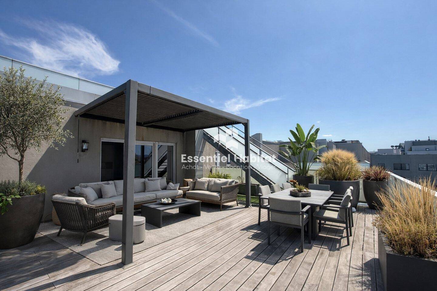 Duplex 4 pièces 121 m² Metz Centre Pompidou - Proximité immédiate de la gare et des commerces - Situé au 7ème et dernier étage d'une résidence sécurisée avec ascenseur, appartement d'exception en duplex de 120m² avec terrasses et rooftop offrant une vue panoramique sur la ville et ses monuments. Vous trouverez une pièce de vie de 55m² avec salon, salle à manger, cuisine ouverte et entièrement équipée, s'ouvrant sur une première terrasse de 49m² et donnant l'accès au toit terrasse de 37m². L'espace nuit comprend deux chambres (15m² et 19m²) chacune disposant de rangements et d'une salle d'eau privative avec Wc ainsi qu'un accès à une terrasse couverte de 12m². Pour votre confort, l'appartement dispose d'une buanderie, ainsi que d'un garage de 28m² en accès direct par l'ascenseur de la résidence. 3Ème chambre possible en déplaçant la cuisine. N'hésitez pas à nous appeler pour plus de renseignements concernant cette belle opportunité. Surface : 121 m² A propos de la copropriété : Pas de procédure en cours Statut provisoire du syndicat : Pas de procédure en cours Nombre de lots : 179 Date de réalisation du diagnostic énergétique : Consommation énergie primaire : 153 kWh/m²/an Consommation énergie finale : 146 kWh/m²/an Montant estimé des dépenses annuelles d'énergie pour un usage standard : entre 1 230 € et 1 710 € par an. Prix moyens des énergies indexés sur l'année 2021 (abonnements compris) Les informations sur les risques auxquels ce bien est exposé sont disponibles sur le site Géorisques :