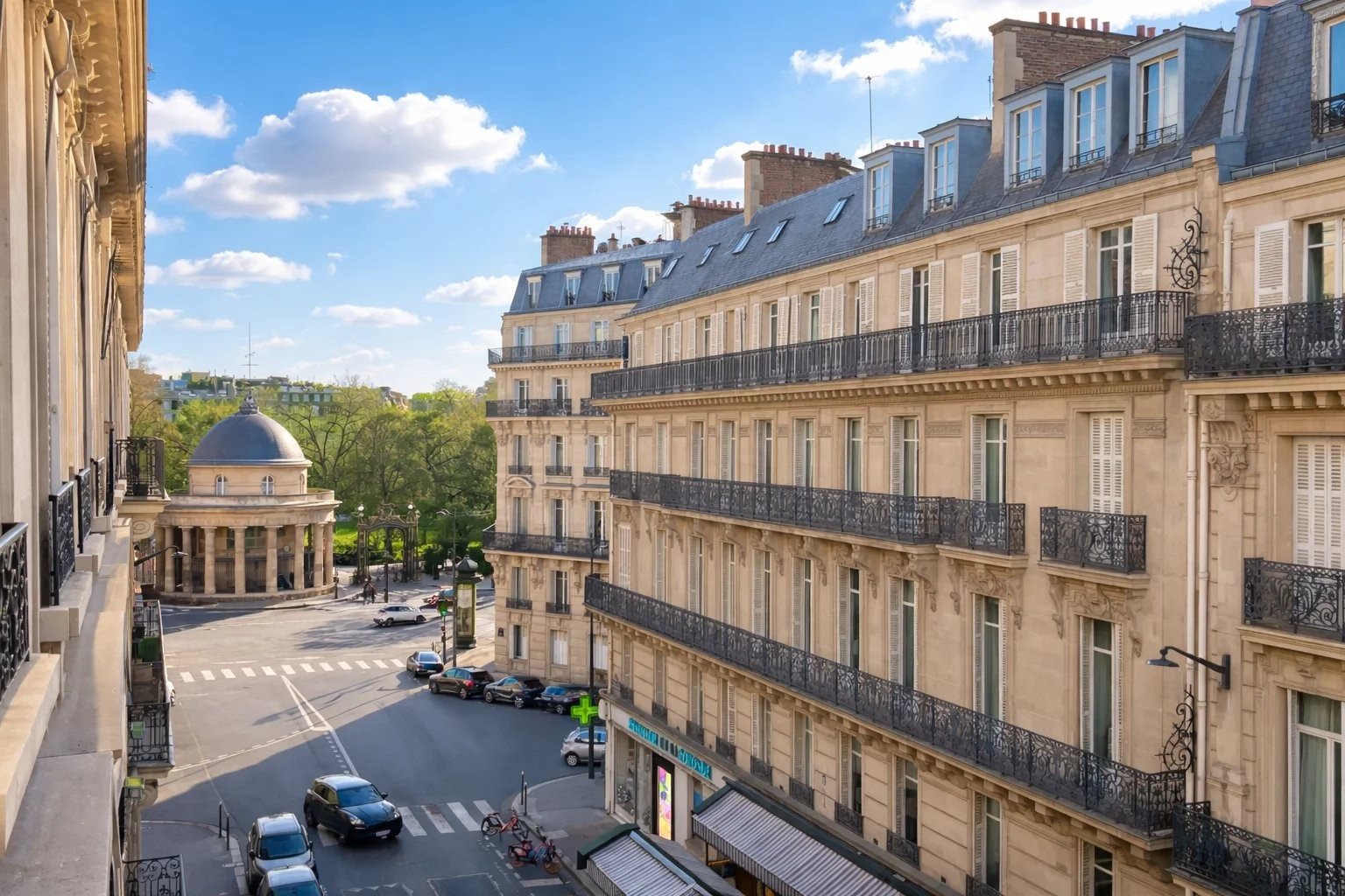 3Ème étage - Vue Parc Monceau. Appartement meublé situé Rue de Phalsbourg, à 100m du parc Monceau. Vue plongeante depuis le balcon sur la Rotonde du Parc Monceau. Très bonne localisation pour les écoles internationales (Bilingue Monceau) comme pour les écoles françaises. Proximité immédiate des métros Monceau (ligne 2) ou Malesherbes (ligne 3). Dans un immeuble haussmannien, de standing, avec de belles parties communes. Au 3ème étage avec ascenseur. Parquet, moulures, grande hauteur sous plafond. Surface: 189m². Il comprend: - une belle entrée - un grand séjour très lumineux, grandes fenêtres. Exposé sud ouest. Vue sur le parc Monceau - une grande salle à manger - une cuisine dinatoire séparée et équipée avec balcon. - une chambre parentale, spacieuse, disposant de nombreux rangements. Lumineuse et agréable. Accès balcon filant. - une salle de bain attenante à la chambre parentale avec baignoire et Wc indépendant - 1 autres chambre avec salle de douche - 2 autres chambres. - Un Wc séparé Appartement idéal pour une famille.