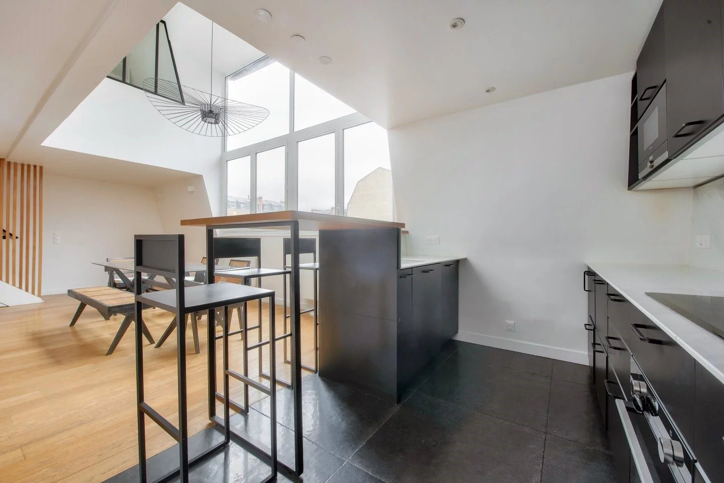 Situé rue Alfred Roll, au cœur du quartier Pereire / Wagram, ce magnifique duplex meublé de 92 m² (98 m² au sol) occupe les 3e et 4e étages, avec ascenseur, d’un immeuble ancien avec gardien. Entièrement rénové récemment, l’appartement séduit par ses volumes exceptionnels et son esprit loft. Disposition : Premier niveau : - Superbe séjour / salle à manger baigné de lumière, offrant 4,80 m de hauteur sous plafond, - Cuisine américaine ouverte, entièrement équipée, avec bar convivial, - Buanderie et dressing - Toilettes invités Second niveau avec climatisation (accessible par un escalier intérieur) : Deux chambres avec 3,75 m de hauteur sous plafond, climatisation et fenêtres Vélux. - Une première chambre avec grand dressing, - Une seconde chambre - Salle de bain attenante comprenant baignoire et WC. Gardien, ascenseur, buanderie, nombreux rangements. À deux pas du boulevard Pereire, des commerces de proximité, des transports (métro Pereire et Wagram, Rer C), et des écoles. Bail code civil ou résidence secondaire