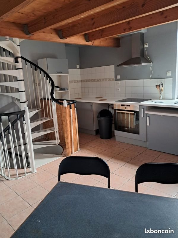 Loue petite maison meublee. Dispose d’une cuisine equipee donnant sur un salon. La chambre et la salle de bain se trouve à l’etage inferieur. Il y a une mezzanine.