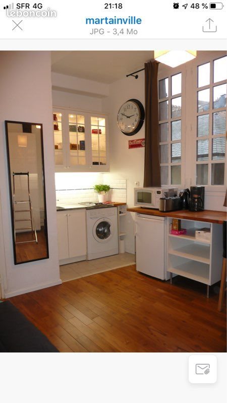 Studio 18,24 m2 entièrement équipé et meublé / 232 Rue Martainville / 76000 Rouen Electroménager, Tv, cuisine complète etc Loyer actuel 615 Euros/mois (575euros/mois + 40 euros de charges) Disponible de suite.