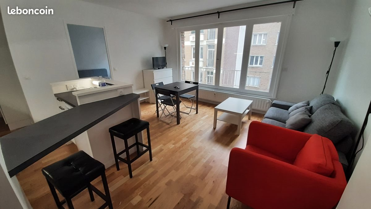 Particulier loue un appartement 2 pièces de 39m2, situé rue Macquart dans le vieux Lille, proximité immédiate du quai de Wault. Secteur calme et central de Lille, proximité à pied tous commerces et des principaux centres d'intérêts de Lille (Solferino/Massena/Rue de la monnaie/Grand-Place, Rihour), du parc de la citadelle, et de nombreuses Universités/Ecoles (Université Catholique de Lille, Ieseg, Hei, Junia ISen, Esme, Epsi, Epitech,...). Situé au 4eme et dernier étage d'un petit immeuble (avec ascenseur), l'appartement a été refait à neuf en 2022, il est entièrement meublé et très lumineux. Il se compose d'un salon ouvert sur cuisine entièrement équipée, d'une chambre confortable, d'une salle de bain, d'une douche italienne, d'un wc séparé. Il offre de nombreux rangements intégrés. Les fenêtres sont équipées de volets (volet électrique pour la baie vitrée du séjour). L'appartement donne sur une cour calme, pas de bruit de circulation. Ameublement et équipement (tout est en très bon état) : canapé, tables, chaises, commode, lit + matelas, tabourets de bar, four, four à micro-onde, lave-vaisselle, lave-linge, tous ustensiles de cuisines, cafetière, bouilloire, télé, draps, serviettes... Loyer 760€ + Charges 150€ (incluant chauffage, eau froide et chaude). Appartement disponible à compter de début mars. N'hésitez pas à me par tel. Julien.