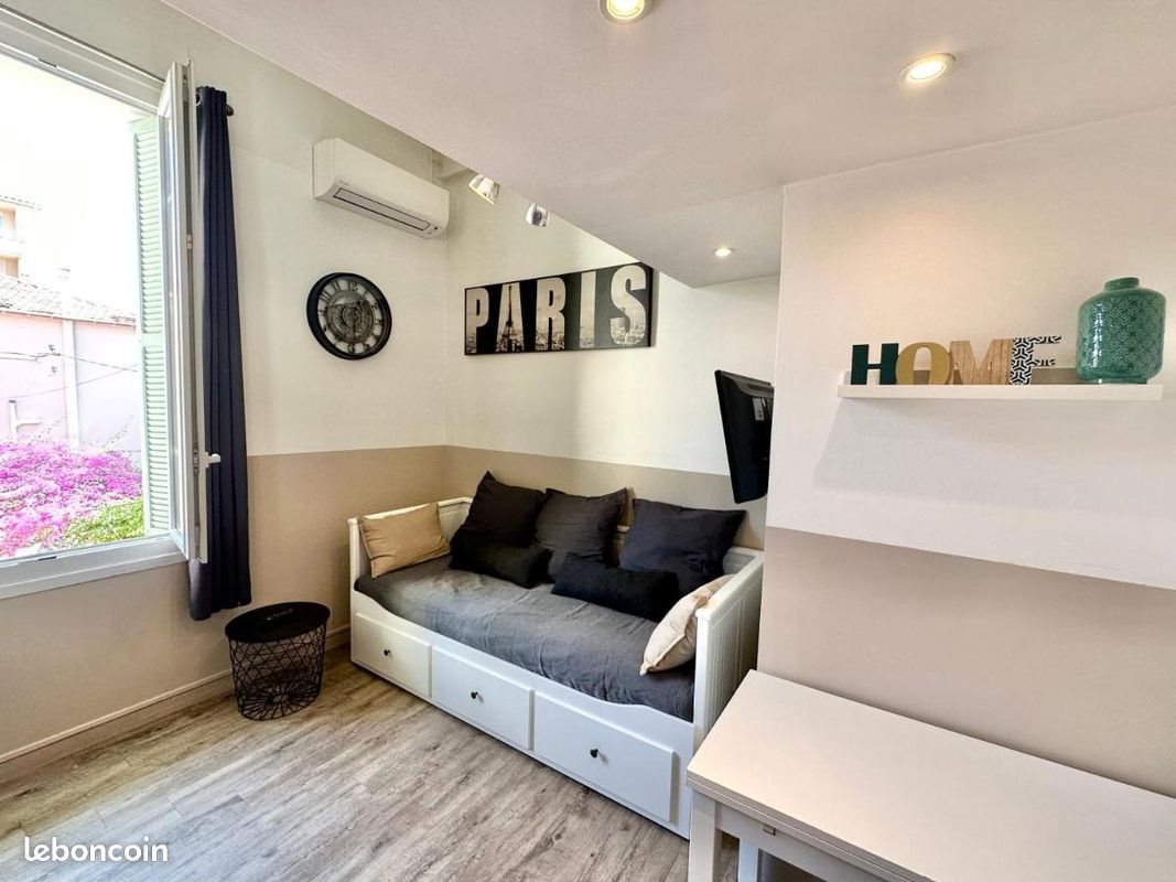 Bonjour, suite à une libération anticipée de notre logement, nous louons notre appartement type loft avec coin nuit en mezzanine et salle de bain-WC d'une superficie totale de 23m² environ. Il est situé au bas de l'avenue de la lanterne, proche des facultés, du lycée des eucalyptus, de l' Hedec, du lycée Paul Augier ou encore de l'IUT Nice Côte d'Azur. Il est également à 2 pas des plages et de la promenade des anglais. Il est situé au premier étage d'une villa. Le studio ne donne pas côté route et est donc très calme. L'accès dans la villa se fait par digicode et interphone pour plus de sécurité. A proximité, vous trouverez toutes les commodités : une pharmacie, un supermarché Carrefour Market, un supermarché Casino, une boulangerie, un magasin de bricolage, restaurant asiatique, banque... Et surtout la promenade des anglais à 200 mètres. Mobilité : Plusieurs arrêts de bus se trouvent également à proximité du studio dont le premier est 100 mètres. La ligne Tram est à 200m (4mn à pied). (Station Ferber) des Stations Velib proches Le studio dispose d'une pièce principale avec cuisine intégrée toute équipée et une chambre en mezzanine avec un lit 2 places. Il possède un équipement complet : -machine à laver, -télévision led, -cuisine entièrement équipée (vaisselle), -canapé convertible (2 places), -table + 4 chaises, -un aspirateur, -un lit 2 places en mezzanine (matelas neuf), -un frigo, -un micro-ondes, -des plaques vitrocéramiques , -fenêtres en Pvc, -meuble à chaussures, -divers rangements et penderie..... De plus, l'appartement est équipé d'une connexion internet Wifi. Le loyer est fixé à 650€ + 100€ de charges (Eau, Edf, charges communes, taxe d'ordures ménagères, Internet Wi-fi). Une régularisation sera effectuée en fin de bail. Pour toutes personnes intéressées, je vous demande de bien vouloir me par mail. Je demande des garanties solides de la part d'une personne se portant caution (fiches de salaire à l'appui) car trop de mauvaises surprises... Visites Possibles dès cette semaine, jusqu'au samedi au plus tard ou début janvier. Le contrat sera un bail étudiant allant de janvier 2026 à juin/juillet 2026. (Possibilité de rallonger de quelques jours pour raisons scolaires ou autres) Demande d'un versement d'un dépôt de garantie d'un mois de loyer (hors charges) qui validera le contrat de location. N'hésitez pas à me pour plus de renseignements ou d'autres photos.
