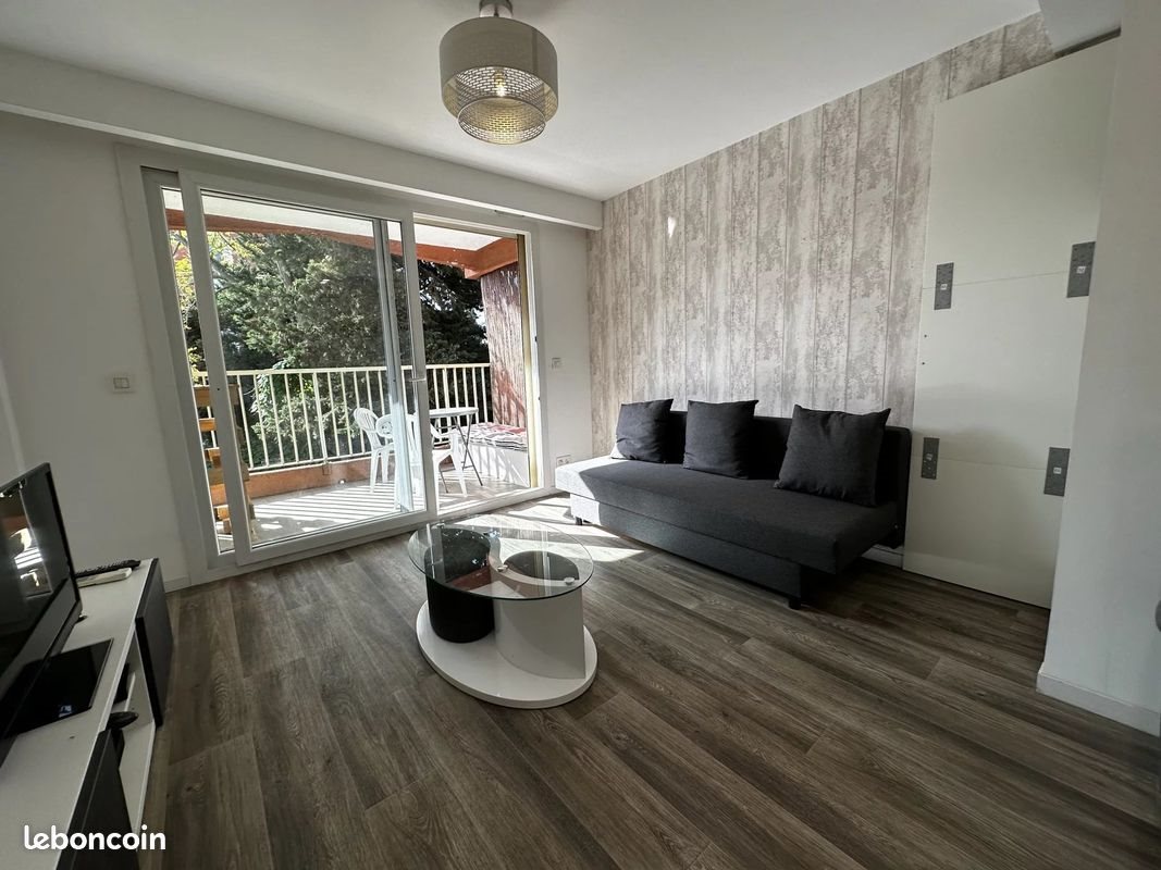 Nice Fabron Grand F1 meublé avec terrasse 35m². Grand F1 au calme comprenant une pièce principale avec cuisine américaine, une pièce supplémentaire servant de coin nuit, une salle de bain avec Wc, un dressing et une terrasse. Exposition Sud Ouest Disponible immédiatement.