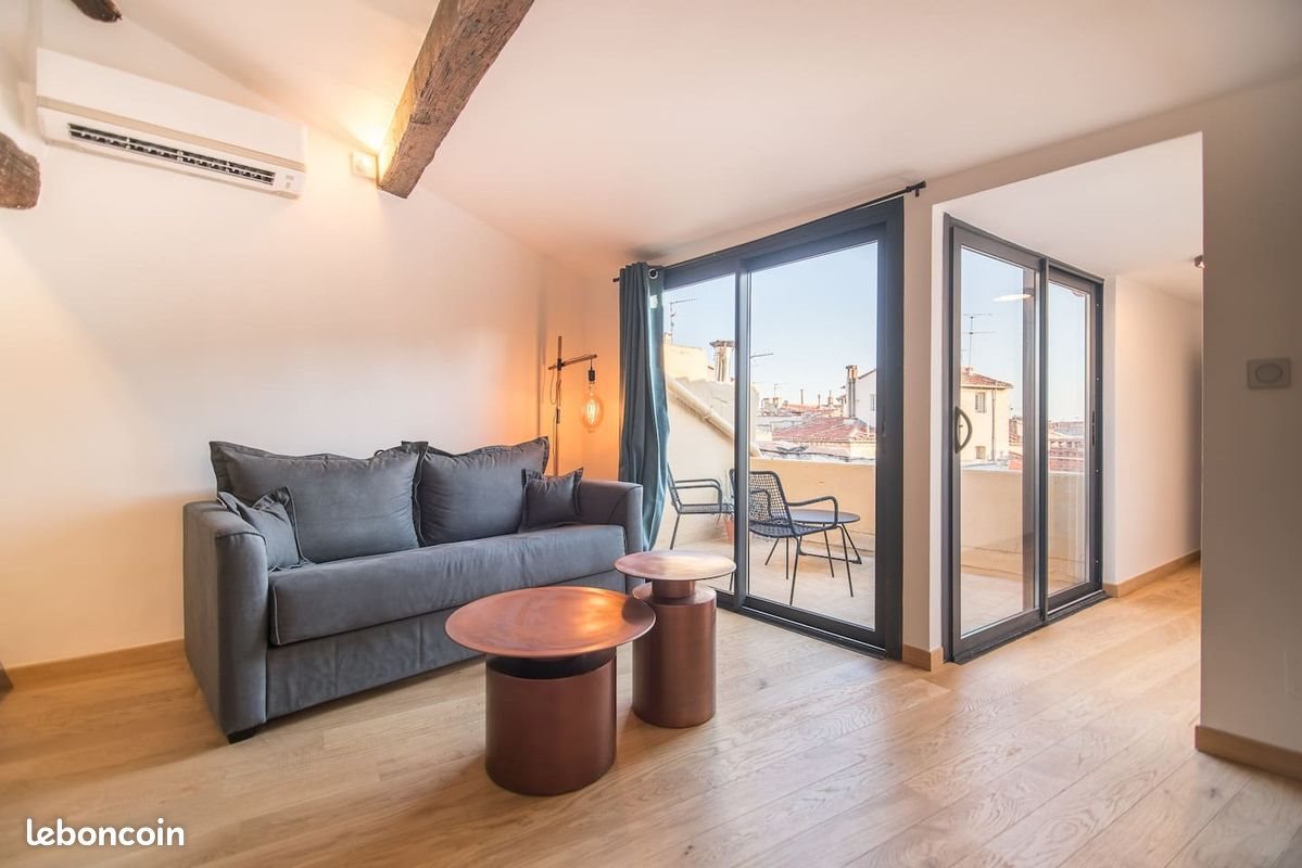 Appartement de standing dans le centre historique de Montpellier (écusson) Disponible en location au mois ou sur plusieurs mois (max 6 mois) - terrasse canon vue sur les toits de Montpellier - Wifi & charges (électricité + eau) inclus - équipé lave-vaisselle, cafetière, lave linge - meublé & aménagé uniquement avec des matériaux de qualité. - la chambre se trouve à l'étage Plus de photos sur demande. Tarif = 1200€/mois toutes charges comprises (chauffage, électricité, eau, Wifi).