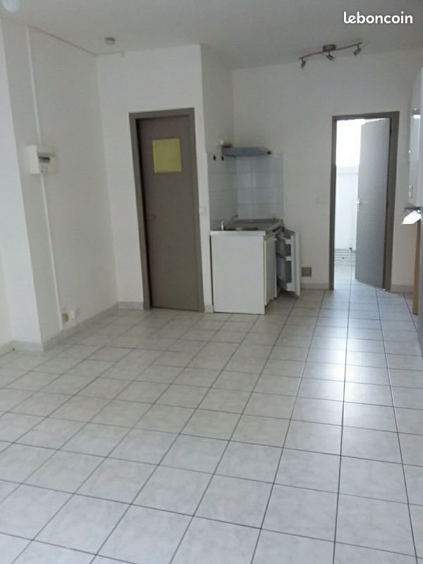 Studio 28m2 Une pièce en carrelage Kitchenette comprenant plaque frigo Un élément de rangement 3 portes Salle de bain avec emplacement machine à laver Proche bus 2,5kms gare Charges comprenant eau taxes ordures ménagères et charges de coopro 55 euros Loyer 450 euros