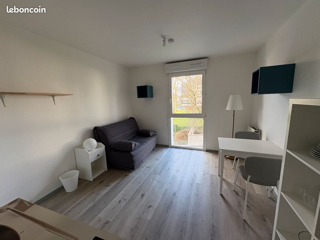 Particulier loue studio meublé de 18 m2, 270 rue de Fougères à Rennes. Une pièce principale + une salle de bain. Refait à neuf et entièrement équipé: canapé lit, couette, oreiller, table, chaises, rangement, vaisselle, four... Place parking en intérieur 520euros / mois + 75 charges comprenant eau chaude/eau froide, chauffage et charges copropriété Aucun frais d'agence. A proximité immédiate des lycées Chateaubriand et Joliot Curie, du campus Beaulieu. Commerces, lignes de bus et de métro Disponible de suite. Garant exigé – Profil étudiant recherché.