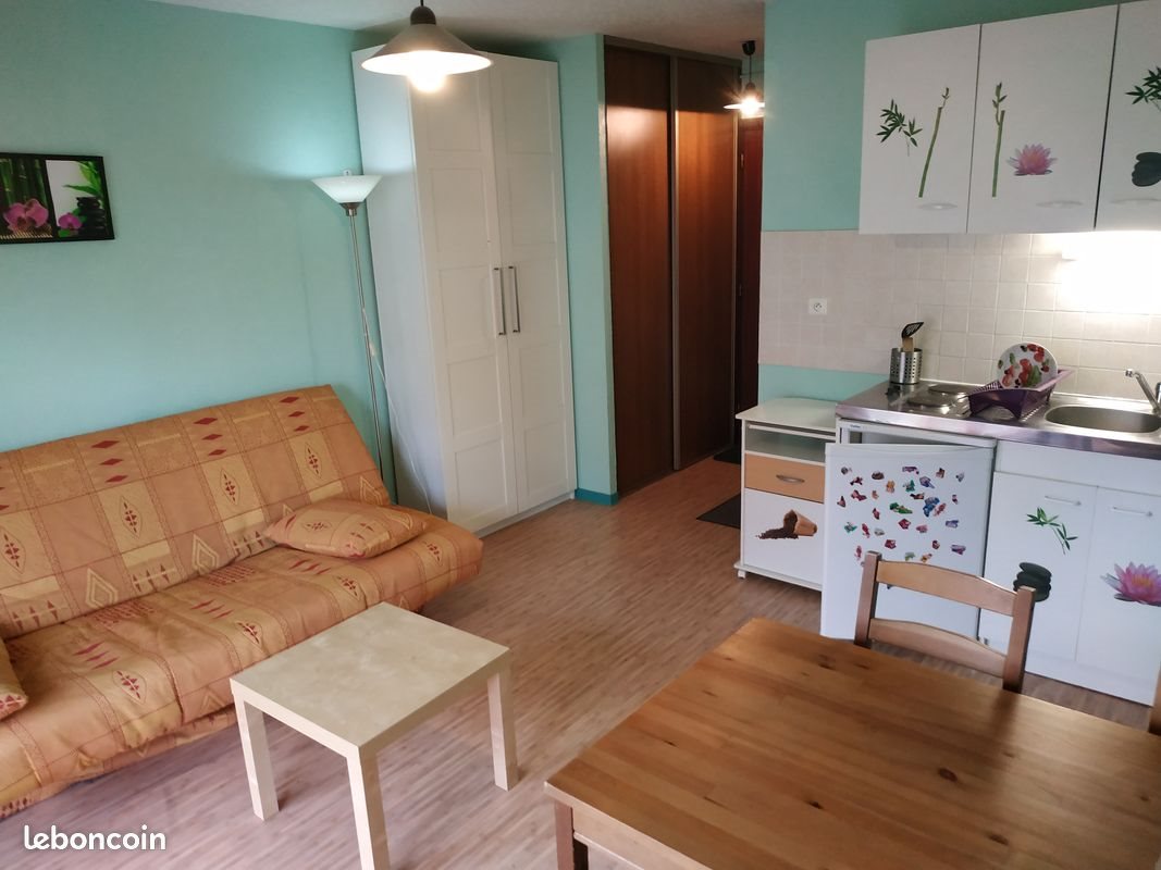 Contact téléphonique uniquement. Ne répond ni aux sms, ni aux messages postés sur leboncoin. A louer studio en très bon état entièrement meublé (clic clac, table basse, table, chaises, armoire, étagères) et équipé (toute la vaisselle fournie). Kitchenette avec frigo, plaques électriques, meubles bas et meubles hauts. Hall d'entrée avec grand placard. Salle de bain avec baignoire, meuble vasque, armoire de toilette et wc. Rez de jardin avec accès à une terrasse d'environ 8m2. Chauffage électrique. Radiateur récent. Dans copropriété calme, interphone. Parking collectif. Situé rue du Muguet, Lycée Pergaud à 200m. Arrêt bus et station tram à 150m : Ligne Bus directe pour le campus la Bouloie en 20 minutes (ensmm, fac sciences et droit, etc). Ligne Tramway directe pour le centre ville en 15 minutes. Ligne Bus ou Tramway pour la gare Viotte en 20 minutes. Loyer 395€ + charges 25€ = 420€ Cc Les charges locatives de copropriété de 25€ comprennent l'eau, l'entretien des communs, l’électricité des communs, les ordures ménagères. Contact téléphonique uniquement. Ne répond ni aux sms, ni aux messages postés sur leboncoin. Si je ne peux répondre, veuillez laisser un message téléphonique avec votre nom, prénom, N° de téléphone, votre statut (étudiant, salarié, autre), si vous disposez d'un garant, et la date pour laquelle vous recherchez un logement. Merci