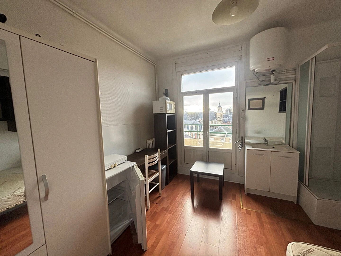 Au dernier étage d'un immeuble de caractère, Cogir immobilier vous propose cette studette meublée de 13m² avec douche privative. Il se compose d'une entrée, d'un coin kitchenette, d'une pièce de vie lumineuse et d'un coin douche. Wc sur le palier à partager avec 2 personnes. Vue exceptionnelle. Chauffage et eau froide dans les charges. Libre de suite. Rennes- Gare- St Helier - Ref. 1071-3 Cogir Immobilier- 6 Avenue Jean Janvier-