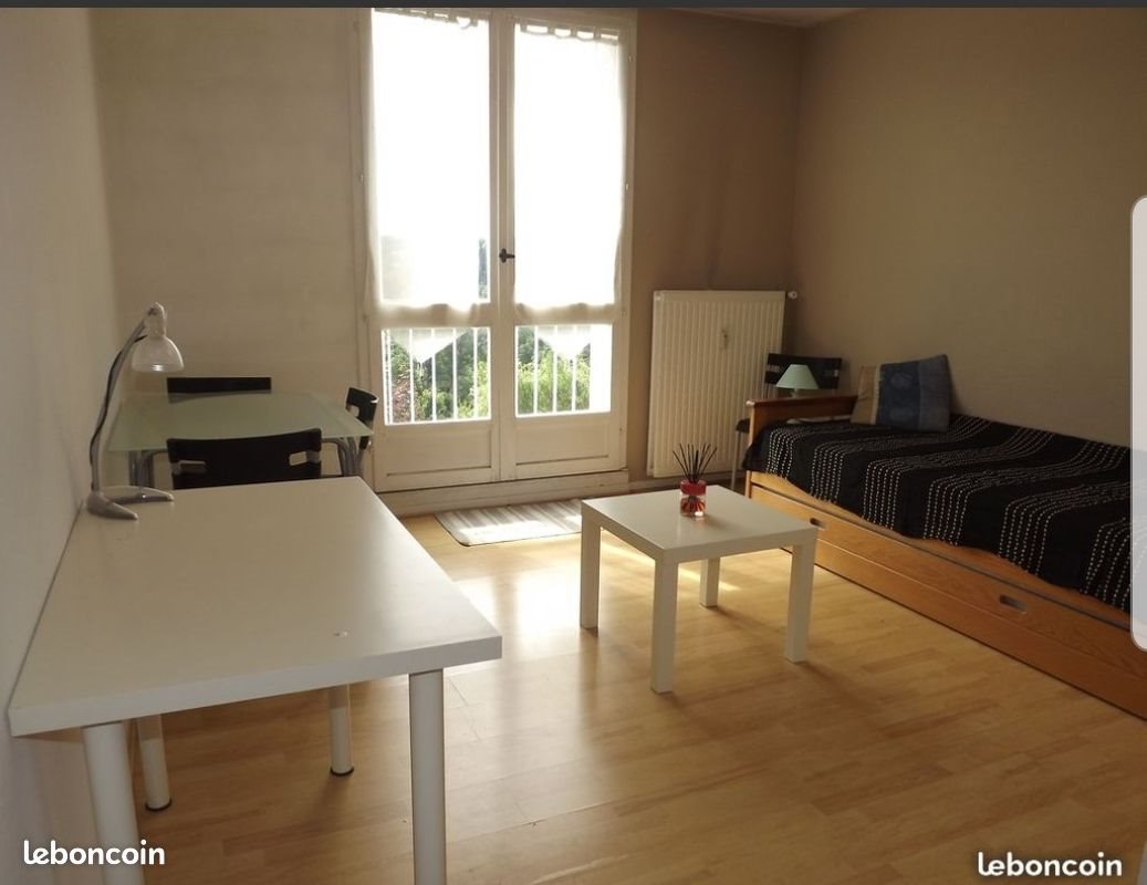 Loue T1 situé 3 rue du Clos Moreau à Limoges, au 4ème étage d'une résidence très calme à 10 mn à pied de la Mairie, Médiathèque et Fac de Droit. Place de parking privative et cave. Appartement composé de : - une entrée/couloir - une cuisine séparée équipée d'une plaque à induction, un four à micro-ondes, un four électrique, une cafetière, une bouilloire, un réfrigérateur, une table + 2 chaises, 2 meubles de rangement - une salle de bain avec baignoire, lavabo, petit meuble et lave-linge - Wc séparés - pièce de vie avec lit gigogne, table de chevet + lampe, table basse, table + 2 chaises, grands placards avec étagères + penderie. Loyer : 330 € + 60 € de charges (eau froide et Chaude, Chauffage, entretien des parties communes, taxes sur les ordures ménagères). Dépôt de garantie : 2 mois de loyer (660 €). De particulier à particulier, pas de frais d'agence. Disponible mi-décembre.