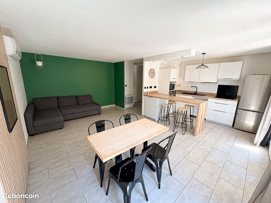 Situé dans une résidence arborée et bien entretenue, cet appartement T2 meublé de 48,45 m² vous séduira par ses volumes, sa luminosité et ses prestations annexes idéales pour un confort de vie au quotidien. ✨ Les atouts du bien : Séjour-cuisine spacieux de plus de 27 m², lumineux et agréable à vivre Chambre confortable de 9,6 m² avec dressing d’angle + Literie de qualité (Epeda) Salle de bains de 3,89 m² et Wc séparés Entrée + dégagement fonctionnels avec placard Terrasse de 6,32 m², parfaite pour vos repas en extérieur vue sur Parc Cellier de 2,45 m² pour optimiser le rangement et mettre la machine à laver pour plus de tranquillité ?️ Location meublée – Équipement complet : Cuisine toute équipée (four, plaque induction, réfrigérateur, micro-ondes, espace bar avec tabourets…) Canapé, table, 4 chaises, lit double, dressing Vaisselle et ustensiles inclus (Pack poêles Tefal Ingenio) Climatisation réversible Matériel d’entretien ménager ? Infos pratiques : Location longue durée (bail meublé 1 an renouvelable) Disponible à partir du Loyer mensuel : 790€/mois hors charges Charges mensuelles : 70€/mois Dépôt de garantie : 1400€ Possibilité de louer un box fermé en supplément ? Contactez-moi pour plus d’infos ou organiser une visite !