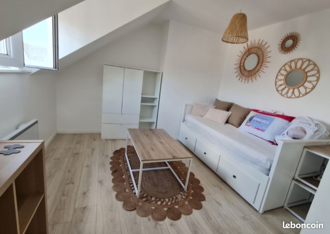 Studio mansardé au 2eme étage, tres lumineux et ensoleillé, cosy, équipé et meublé, chambre séparée, salle de douche et toilettes. Equipement neuf. Immeuble calme, parking possible. Bus devant, proche écoles et faculté.