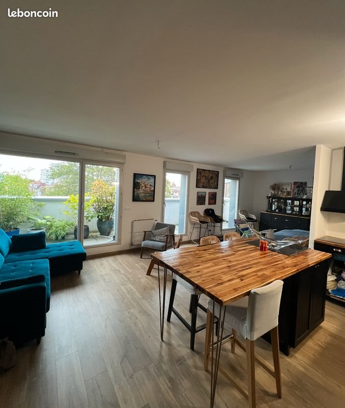 Disponible des a présent Je suis ok pour quelques mois. Construit en 2022. 970 euros charges comprises sans elec + Gaz. Je paie très peu d’électricité, 70 euros par mois pour le gaz et l’électricité. Équipements • Appartement de 50 m² au dernier étage • Terrasse de 8 m² avec vue dégagée sur le beffroi de Lille et un futur square • Salle de bain avec baignoire • Machine à laver • Wc japonais lavant séparé • Système de traitement de l’eau avec filtration, adoucisseur et osmoseur • Cuisine équipée avec plaques à induction, hotte, four, réfrigérateur, micro ondes et évier • Séjour avec canapé et dressing • Chambre avec lit à mémoire de forme, escamotable vertical et ce transforme en canapé. • Chauffage et eau chaude par chaudière à gaz • Parking voiture sécurisé en sous sol • Étendoir de plafond amovible et discret Côté agrément Appartement très lumineux, situé au dernier étage, offrant une vraie sensation d’espace et de calme. La terrasse permet de profiter d’une vue ouverte et agréable, sans vis à vis direct, vue sur beffroi de Lille. La copropriété est particulièrement tranquille, avec un étage très silencieux. Aucun bruit de voisinage ni nuisance sonore de la rue ne se fait entendre, notamment grâce au parking en sous sol. Je souhaite que les premier échange soit par message.