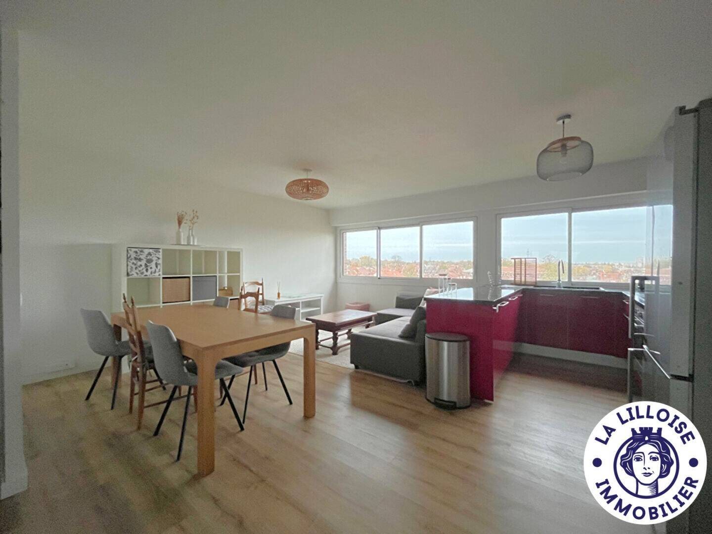 La Lilloise Immobilier vous propose ce lumineux et moderne T3 meublé idéalement situé à Saint Maurice Pel Voisin. Niché au 7e et dernier étage avec ascenseur, il offre une belle vue sur la ville de Lille. Côté intérieur, il se compose d'une entrée avec de grands placards, un grand salon/séjour ouvert sur une cuisine équipée. Le couloir va desservir deux chambres, une salle de bain avec une machine à laver et des Wc séparés. Une place de parking en sous-sol complète cette prestation. Libre de suite, à visiter !