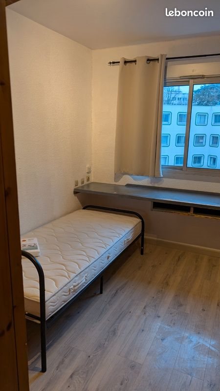 Studette meublée, disponible dès le . Dans résidence étudiante près du Chu et en bordure de la faculté de Rennes 2. Lit, matelas, alèse, lavabo , rangements, fibre. Toilettes et salles de bain communes à 5 studettes. Cuisine en commun, machines à laver payantes, garage à vélo, place de parking numérotée. Parquet neuf, peintures rafraîchies. Le bureau va bientôt être changé, et une commode remplacera le meuble à trous volumineux.