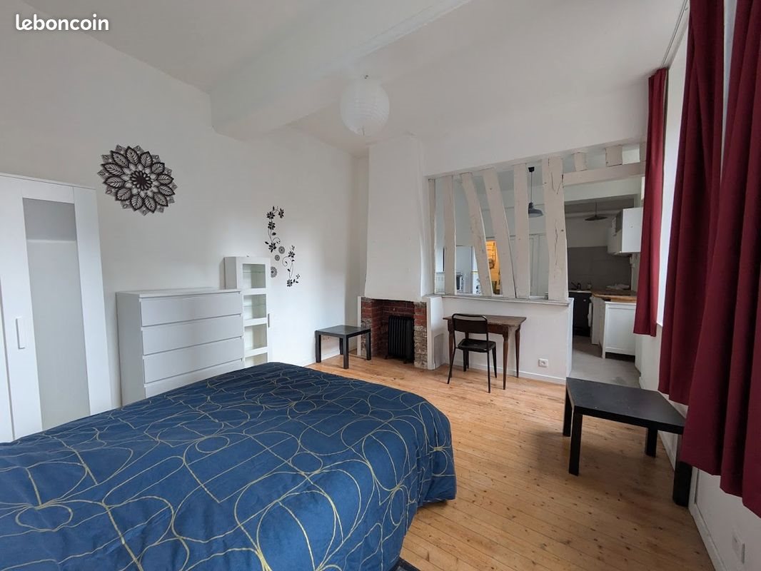 Ce studio situé dans le quartier historique de Rouen, est proche des commerces et des transports en commun. Dans un immeuble ancien il donne dans une rue piétonne. Au Rdch, exposé au sud il est lumineux et calme. Vous entrez dans la pièce principale chambre salon, le coin cuisine/ repas est derrière des poutres apparentes douche /Wc isolé. Le studio est meublé avec une machine à laver le linge. Disponible dès maintenant.