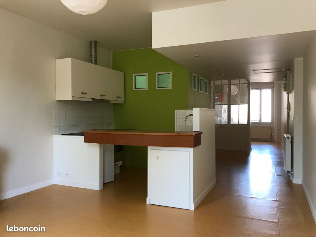 Appartement 4 Cours Fauriel 2ème Etage À louer appartement de 64 m2, libre de suite, au deuxième étage d'un petit immeuble ancien du début du Cours Fauriel, tout près du parc de la place Villebœuf. L'espace est dégagé, ensoleillé et ombragé par les platanes des contre-allées. À proximité se trouvent le Conservatoire, l'école maternelle et l'école publique. Proche des commerces des quartiers Saint-Roch et de Villebœuf, cet appartement est à deux pas du centre-ville et au croisement de plusieurs lignes de bus M2. M6. M7. Ligne 13 desservant entre autre la gare Sncf, l'ENISE, les Facultés, l'école des Mines. L'accès en voiture est facilité par les entrées d'autoroute du Rond-Point et de Montplaisir. L'appartement est traversant Est-Ouest avec une petite ouverture côté Sud. Il a été entièrement aménagé en espace ouvert et lumineux type loft avec un coin Jour (côté Cours Fauriel) et un coin Nuit (côté cour). En partie centrale l'entrée de l'appartement donne sur un vestiaire et permet l'accès aux sanitaires. La cuisine ouverte sur le séjour est équipée d'une plaque de cuisson gaz, d'un four et d'un petit réfrigérateur. Une pièce supplémentaire avec fenêtre sur cour dotée d'un réduit pour machine à laver et d'une petite mezzanine peut servir de bureau ou de dressing est en continuité de la chambre côté ouest. Le chauffage est assurée par une chaudière individuelle à condensation au gaz entièrement neuve. Les murs de façade sont isolés et les plafonds rabaissés. Les fenêtres sont en Pvc avec double vitrage (10 mm pour isolation phonique côté Cours Fauriel). L'ensemble est simple et original, agréable à vivre et avant tout fonctionnel. Il convient parfaitement à un couple ou une personne seule.