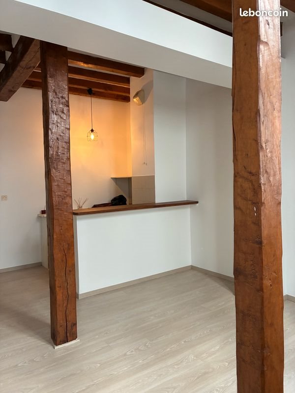 Quartier saint Malou Rouen. T2 de charme de 35 m2 juste rénové, 1er étage, au calme sur cour intérieure. Beau séjour avec poutres et cuisine ouverte, chambre avec salle de bain attenante, wc indépendants. Chauffage individuel électrique. Interphone, double porte d'entrée. Loyer de 604 €/mois Cc dont 29 €de charges. Caution de 575 €