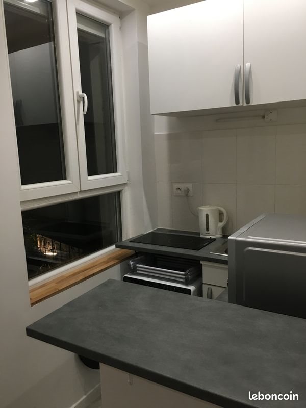 Studio meublé de 16,30 m2 au 1er étage rue des Rigoles 75020 Sur jolie cour. Calme et clair (deux grands fenêtres) Il est composé de : - une entrée, - un salon avec canapé-lit, table, chaises,étagères et armoire/dressing, - un coin cuisine entièrement équipé, - une salle d’eau avec douche, lavabo, wc et porte-serviettes chauffant. Remarque. Sont neufs le canapé-lit (matelas Simmons de 13 cm), la machine à laver le linge, le four combiné micro-onde, la plaque à induction et l’armoire/dressing Ikéa. Studio bien isolé (mur et fenêtres).
