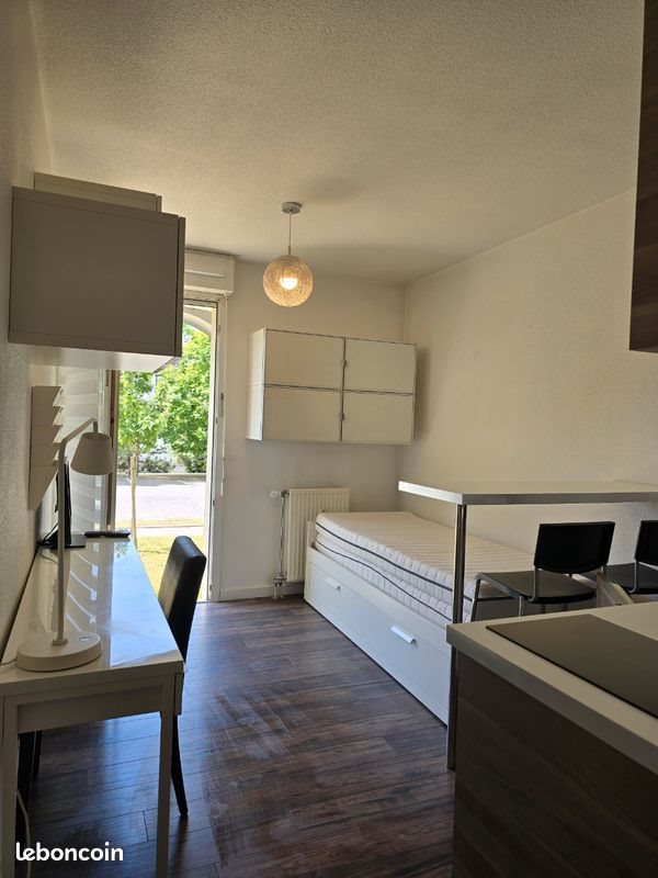A louer studio meublé de 16 mètres carrés à Rennes, au rez-de-chaussée d'une résidence sécurisée avec interphone et badge pour entrée dans la résidence . Idéal pour étudiant. Il se compose d'une pièce principale qui dispose d'une porte fenêtre donnant directement sur un carré de pelouse. Il est équipé d'une kitchenette (frigo, micro-onde, vaisselle, plaque induction), un lit extensible en 2 places, une télévision, d'un placard servant de dressing, séchoir à linge, placard à chaussures, et d'une salle de bains équipée d'une douche. Il dispose de la fibre optique (contrat à sosucrire si besoin). Une place de parking en sous sol fermé est à disposition ainsi qu'un local vélo sécurisé commun à l'entrée de l’immeuble. Il se situe rue de fougères, à proximité du parc des Gayeulles, de tous commerces (centre commercial des longs champs, mac Donald's...) ainsi que du campus de Beaulieu et du lycée Joliot curie et Chateaubriand. Une sortie de métro Beaulieu université est à proximité ainsi que des arrêts de bus. Il sera libre courant janvier 2026. Prix 460 euros + 80 euros de charges (eau chaude + chauffage + ordures ménagères, reste un contrat d’électricité à souscrire uniquement pour la lumière, les appareils électroménagers et informatiques).