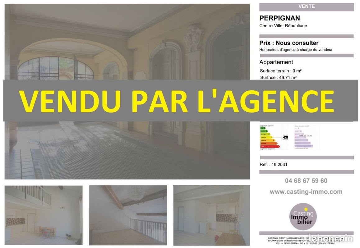 Loft 1 pièce 53 m² o Cet Appartement A Ete Vendu Par L'agence o A Perpignan Centre-Ville. Proche de la place République, au dernier étage d'une fastueuse maison de maître de 1850, avec jardin suspendu et parking privé, appartement loft avec mezzanine... 53M2 de surface habitable avec cuisine aménagée et salle d'eau. Très lumineux. La bâtisse et cet appartement respirent le caractère et l'histoire ! Ideal Pied A Terre ! Cet appartement est vendu avec un parking privé, chose rare en centre-ville. Ce bien immobilier est soumis au statut de la copropriété. Quote-Part des charges de copropriété : 1100 euros /an. Consulter l'agence pour connaître les informations complètes relatives au syndicat de copropriété. O Cet Appartement A Ete Vendu Par L'agence o Vous souhaitez vendre votre bien immobilier ? [Coordonnées masquées] Casting Immobilier, agence immobilière à Perpignan (66), [Coordonnées masquées] Surface : 53 m² Consommation énergie primaire : 205 kWh/m²/an Consommation énergie finale : Non communiqué