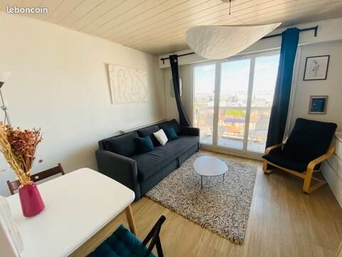 Situé au dernier étage avec ascenseur, ce studio meublé, agréable et lumineux, offre une vue imprenable dégagée, une exposition sud-est, et un environnement paisible, en plein centre de Paris. Il se compose d’une entrée avec rangements, d’une salle de bain équipée (douche, Wc et machine à laver), puis d’une pièce de vie fonctionnelle comprenant un coin salon avec canapé-lit deux places, des espaces de rangement et télévision ainsi qu'une table à manger et une cuisine entièrement équipée (réfrigérateur, plaques de cuisson, four). Le tout s’ouvre sur un grand balcon ensoleillé, aménagé avec table et chaise, parfait pour les repas ou les moments de détente. Immeuble sécurisé avec gardienne. Charges incluses, comprenant notamment le chauffage et eau chaude collectif. Disponible à partir du 21 janvier, premières visites possibles ce samedi 10 janvier entre 10h et midi. Merci de prévoir un dossier complet (identité, revenus, avis d’impôt, garant si étudiant)