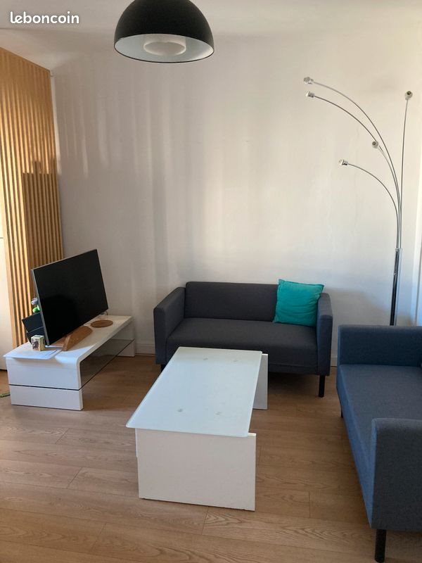 Loue T3 meublé 46m2 + terrasse 9m2 Climatisation réversible dans salon-cuisine et chambre1, chauffage électrique dans chambre 2 et SdB 4ème et dernier étage sans ascenseur, interphone Fibre disponible dans l’immeuble Entièrement équipé Terrasse : Canapé 3 places+Fauteuil+ table d’appoint Table +4 chaises pliantes Salon : 2 canapés 2 tables basses Lampadaire sur pied Cuisine : Four Four micro ondes Plaques induction Lave vaisselle Réfrigérateur-congélateur 2 compartiments séparés Machine à café Grille pain Vaisselle + accessoires cuisine 3 tabourets haut Chambre 1 : Lit 140x190 Armoire murale Table de chevet Chambre 2 : Lit+ 4coffres 140x200 Rangements Table de chevet SdB –Wc : Bac à douche Lave linge Sèche linge