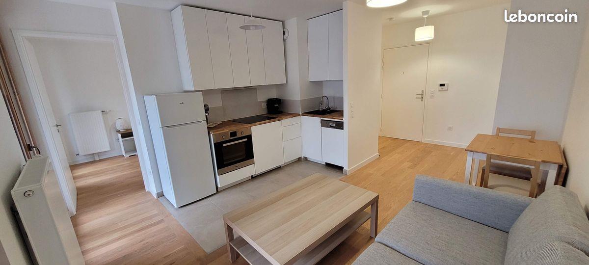 Splendide et lumineux appartement tout équipé de 37m² de pièces à vivre + 7m² de loggia (tournée vers Montmartre), au 6ème étage d'un immeuble neuf. L'éco-Quartier et l'appartement sont complètement isolés de la rue La Chapelle. Loyer 1.150€/mois + 100€ charges locatives -- Chauffage et eau chaude compris dans les charges. Le bâtiment possède un double ascenseur et des rangements à vélo dans le hall sécurisé. Double digicode. Grande cours intérieure. Possibilité de louer une place de parking en sous-sol. L'immeuble et l'appartement sont aux normes d'accessibilité tout handicap. ------ Éco-quartier "Chapelle Internationale" – 4min du Métro 12 et Tram T3b Porte de La Chapelle. ------ Visites : Dimanche 19 octobre – entre 14h et 17h. Me par mail uniquement. Bail d'un an reconductible. Emménagement : A partir du 23 octobre 2025 ------ Équipement : - Chambre : Lit double de 140x200, 2 tables de nuit, 1 armoire, 1 commode. - Salon : 1 grand canapé, 1 table basse, 4 chaises et une table à manger - Cuisine et salle de bain équipées (four, plaques cuissons, hotte, lave-linge, lave vaisselle, rangements, vmc). Classe énergétique C Commerces à proximité : Magasin Metro, salle de sport Basic Fit, super marché Diagonal, petits commerces.