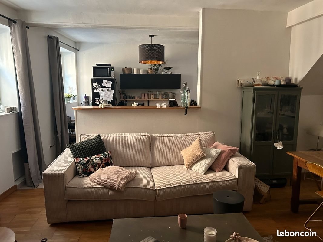 A 5 minutes de la Place du Vieux Marché, place Cauchoise (début rue du Renard), entre la gare et le pôle universitaire Pasteur, idéal pour une jeune famille, l'appartement atypique de type F3 Duplex d'une superficie de 77m2 : Au Rdc : 1 cuisine ouverte équipée (lave linge, cuisinière avec hotte), salon salle à manger. Au 1 er étage : deux chambres, une sdd avec Wc. Nombreux placards Montant du loyer mensuel : 860€ Montant des charges mensuelles : 50€ Aucun frais de bail à prévoir (particulier à particulier) Disponible début Décembre Agence s'abstenir.