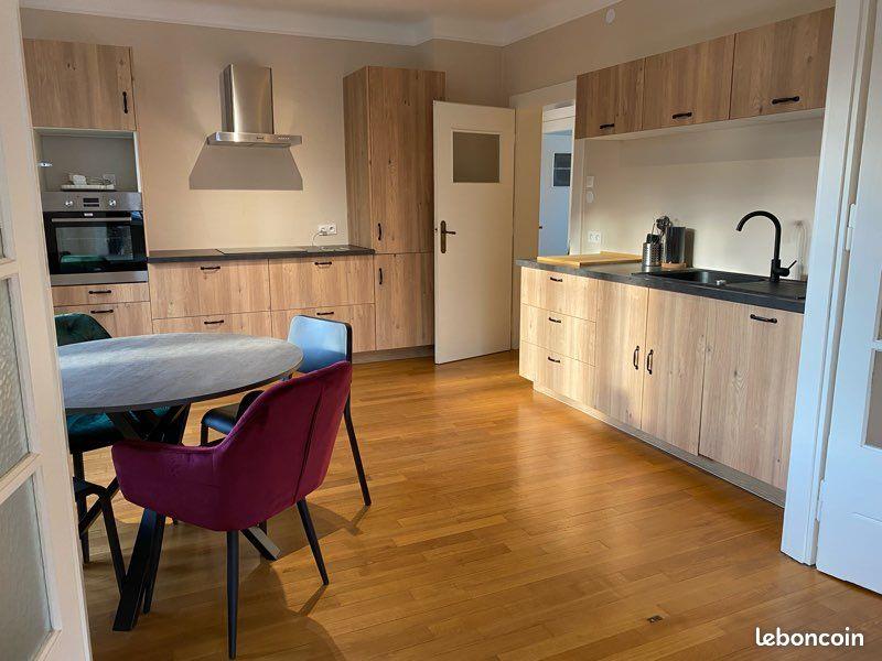 Appartement meublé et rénové comprenant : 1 cuisine équipée 1 salon 1 buanderie 1 Wc séparé 1 SdB avec douche 3 chambres 1 cave 1 garage 1 petit jardin Disponible à partir de mi octobre Loyer 1250€ Charges 50€