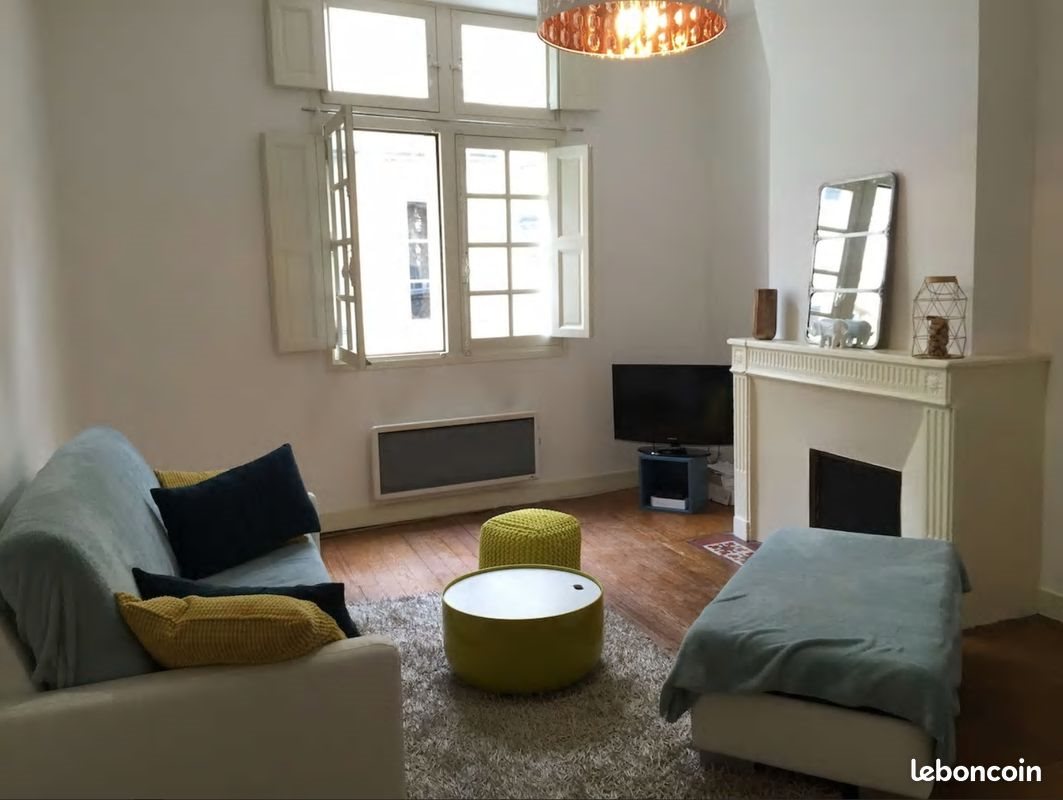 Location d'un appartement entièrement meublé en plein centre-ville de Bordeaux, au 29, rue du Pas St-Georges, au 1er étage, composé de la façon suivante: - 1 chambre côté intérieur, au calme, - cuisine ouverte entièrement équipée (four, lave-vaisselle, plaques à induction) - entrée avec placard donnant accès au séjour ou à la salle à manger - salle à manger donnant sur la cuisine, modifiable en salle de détente ou bureau... - salon côté rue avec canapé convertible, Tv... - salle de bain avec machine à laver, sèche-linge, baignoire - Wc indépendant. Possibilité d’accueillir 2 étudiants ou un couple. Loyer : 1 090€/mois charges comprises (60€) dont l’eau et copro Disponible le