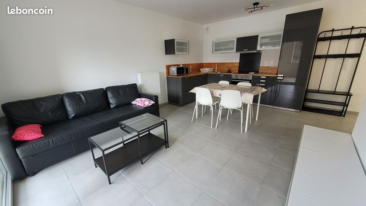 À louer – T2 meublé avec terrasse 53m² avec garage – 550 € + 100 € de charges Bel appartement T2 meublé au rez‑de‑jardin d’une résidence neuve et calme, comprenant une grande pièce de vie lumineuse avec - cuisine équipée (four, plaques, hotte, micro‑ondes, réfrigérateur, rangements), tables et 4 chaises - coin salon avec canapé convertible. - grande terrasse couverte offrant un véritable espace extérieur La partie nuit se compose - d’une chambre séparée avec grand lit en 160, dressing et commodes - d’une salle d’eau avec douche à l’italienne, meuble vasque, sèche serviette et lave‑linge séchant Wc séparés. Un garage de 13m² fermé complète ce bien et offre un stationnement sécurisé. Loyer mensuel : 550 €/mois Charge 100€/mois avec régularisation annuelle, comprenant copropriété, chauffage, eau. Dépôt de garantie : 1100 €. Tram et commerces accessibles à pied, gare de Saint‑Étienne‑Châteaucreux à une dizaine de minutes, Lyon à environ 40 minutes en train depuis la gare. Visites sur rendez‑vous.