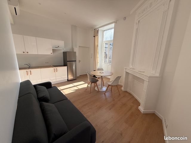 Idéalement situé place du Pradeau dans le quartier Saint-Seurin, Appartement meublé de type 2 avec balcon, Il se compose d'une pièce de vie avec cuisine équipée, une salle d'eau avec wc et une chambre avec rangements. L'appartement est disponible à partir du 20/12