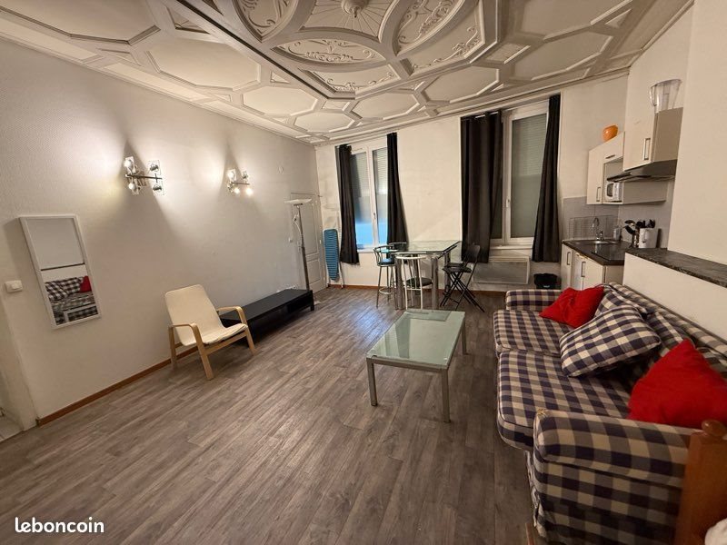 Loue grand studio Cuisine équipée avec four plaque vitrocéramique et frigidaire Lit avec une place avec possibilité de déplier une seconde place Double vitrage isolant avec volets électriques roulants Place de parking attitrée Libre de suite Attention s agissant d un meuble la caution est de 1000€