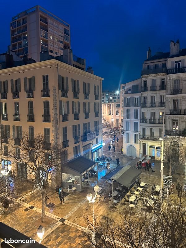 Dominant la place Louis Blanc, cet appartement de 42 m² offre une vue exceptionnelle du Cours Lafayette au port. Charmant et lumineux il comprend : une entrée, un séjour avec cuisine ouverte, une chambre avec grand lit, une alcôve et une salle de bains. L'ensemble a été entièrement rénové récemment. Aucun vis-à-vis, fenêtres avec double vitrage, climatisation, 3éme étage sans ascenseur. Excellente situation à proximité du centre Mayol (Carrefour)et du stade , de nombreux établissements publics, pharmacie, poste, banques, marché provençal, arrêt de bus... Et de la porte de l'Arsenal et de la préfecture maritime. Entièrement meublé : canapé, table basse, table et chaises pour repas, lit, chevet...casseroles, vaisselles...