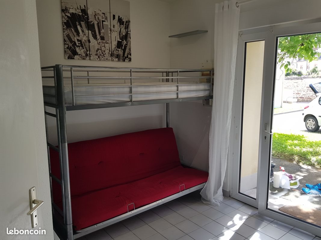 A louer studio de 17 m2 en rez de chaussée d'un bâtiment d'1 seul étage, situé rue de Chateaugiron dans le quartier St Hélier à Rennes. Le studio est loué meublé, avec une kitchenette aménagée, frigo, plaques électriques, micro ondes. Dans cette pièce, on y trouve un espace bureau ainsi qu'un lit mezzanine avec un canapé en dessous, pouvant servir également de couchage. Une salle de douche avec toilette complète le studio. Profil recherché: étudiant avec parents garants. Le loyer est de 435 euros avec charges (il faut rajouter son abonnement Edf et Eau). Libre à partir du 22 janvier.