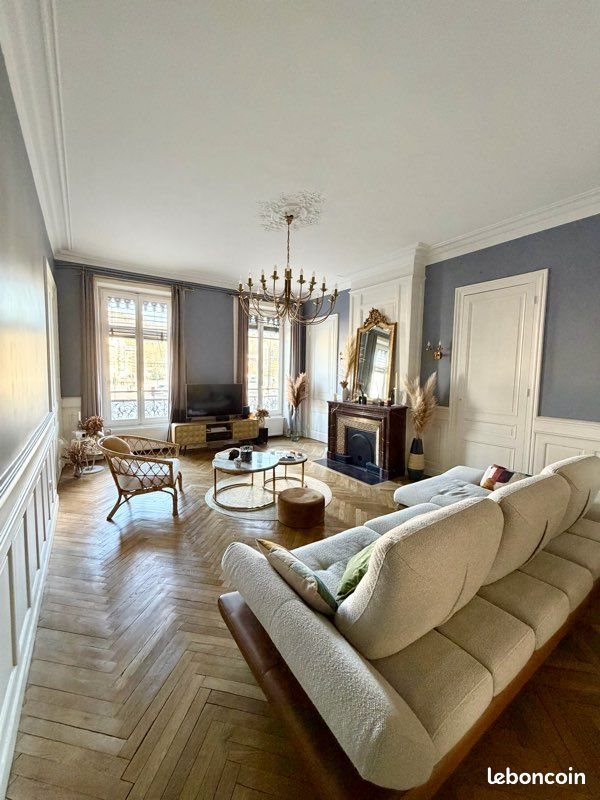 À louer, direct propriétaire. Appartement d’exception, sur les quais de Saône à proximité immédiate du métro Valmy et du centre (Bellecour à deux arrêts de métro). Traversant et calme avec vue dégagée. T4 de 128 m² avec le charme de l’ancien (parquet chevron, moulures) refait à neuf avec une grande hauteur sous plafond et lumineux, il dispose : - d’un séjour spacieux, vue dégagée sur les quais, avec cheminée en marbre et moulures - d’une cuisine américaine entièrement équipée (four, lave vaisselle, hotte et nombreux rangements) ouverte sur le séjour - d’une salle à manger de réception (pouvant éventuellement être transformée en chambre) - de deux chambres avec dressing et rangements - une salle de bain (double vasque, douche à l’italienne et baignoire) ainsi que des toilettes séparées. L’Appartement est loué entièrement meublé avec un mobilier haut de gamme et de nombreux rangements.