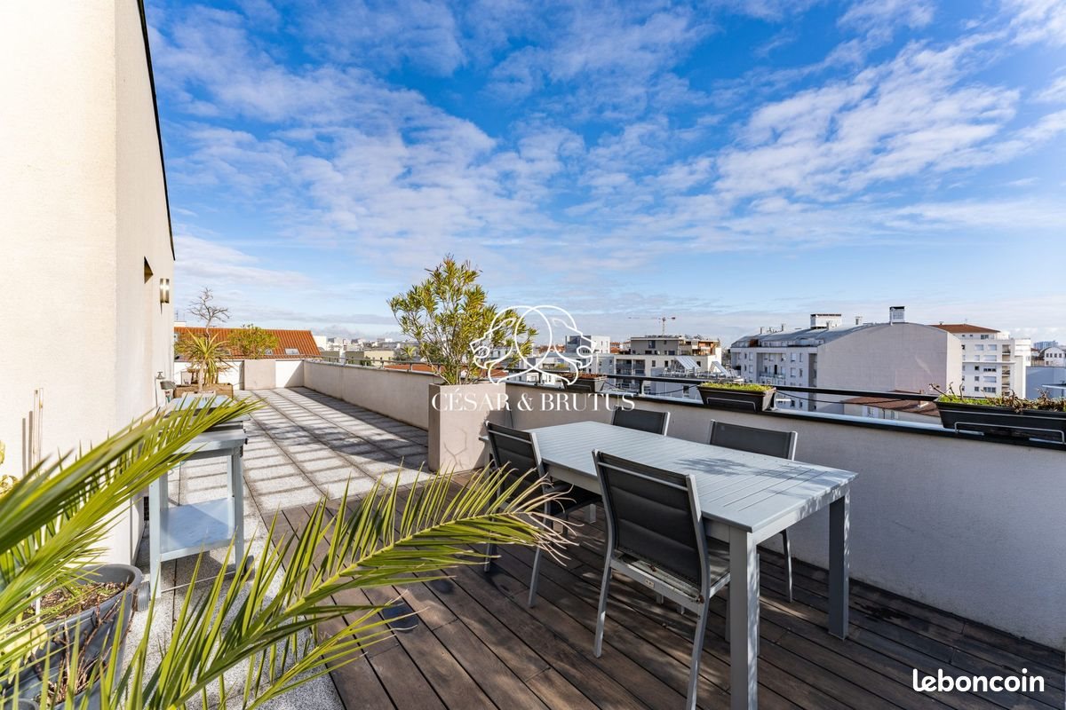 Duplex 4 pièces 113 m² Villeurbanne - rue Arago - Attique en duplex 113m² avec sa terrasse panoramique de 165m² avec sauna. Vanessa Etienne et César et Brutus vous proposent un attique d'exception. La vie à ciel ouvert., imaginez vivre dans une maison posée sur le toit. Situé aux deux derniers étages d'une copropriété de standing de 2017 (encore sous garantie décennale), ce bien d'exception réinvente la vie urbaine. Dès l'entrée, la magie opère : baigné de lumière grâce à une exposition Sud-Ouest idéale, le séjour s'ouvre sur l'extraordinaire. L'atout Majeur : Une terrasse spectaculaire de 165 m² en bois exotique. Plus qu'un extérieur, c'est une véritable pièce de vie à ciel ouvert, équipée de son propre sauna pour des instants de détente absolue. L'intérieur :Le 6ème et dernier étage est dédié à la convivialité et aux parents : Une pièce de vie aux volumes généreux, sublimée par une cuisine haut de gamme Schmitt entièrement équipée. Une suite parentale intimiste avec son dressing et sa salle d'eau privative. Le côté pratique n'est pas oublié : une vaste buanderie avec adoucisseur d'eau et un Wc indépendant complètent ce niveau. Le 5ème étage (espace nuit) offre calme et indépendance : Deux grandes chambres avec placards intégrés. Une salle de bains familiale avec double vasque. Un second Wc indépendant. Les Plus : - Possibilité d'acquérir en sus un box double côte à côte, déjà équipé d'une borne de recharge électrique - Le bien est entièrement climatisé Prestations modernes, aucun travaux à prévoir. Un bien unique sur le marché qui allie le confort du neuf à la rareté d'un extérieur démesuré. Pour échanger sur votre projet immobilier, contactez Vanessa Etienne ou par mail [Coordonnées masquées] Ref Ve-9384 Votre conseiller Cesar Et Brutus : Vanessa Etienne Agent commercial (Entreprise individuelle) Rsac Lyon Surface : 113 m² A propos de la copropriété : Pas de procédure en cours Nombre de lots : 131 Date de réalisation du diagnostic énergétique : Consommation énergie primaire : 84 kWh/m²/an Consommation énergie finale : 74.00 kWh/m²/an Montant estimé des dépenses annuelles d'énergie pour un usage standard : entre 1 050 € et 1 470 € sur les années 2021, 2022 et 2023 (abonnements compris). Les informations sur les risques auxquels ce bien est exposé sont disponibles sur le site Géorisques :