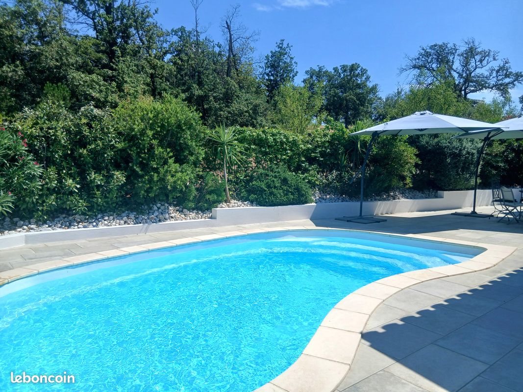 Elégante et atypique Villa très récente au très grand calme, face à un bois et sans vis à vis au coeur de Perpignan secteur Av. D'espagne / Saint Martin. Accessible à personne à mobilité réduite. Confort du plain pied total. 3 chambres de 12, 13 et 15m² (possibilité créer une suite parentale), Lumineuse pièce à vivre de 55m² avec accès directe (baie à galandage) sur terrasse 100m² avec splendide piscine, cuisine équipée (à tiroirs), une salle de bains 7m² (douche et baignoire), 2 wc. Garage 18m² + mezzanine. Terrain paysagé 3 faces de 420m² dans cadre très verdoyant. Sous Garantie dommage Ouvrage de 10 ans. Vente de Particulier à Particulier je demande donc aux agences de ne Pas me pour un mandat.